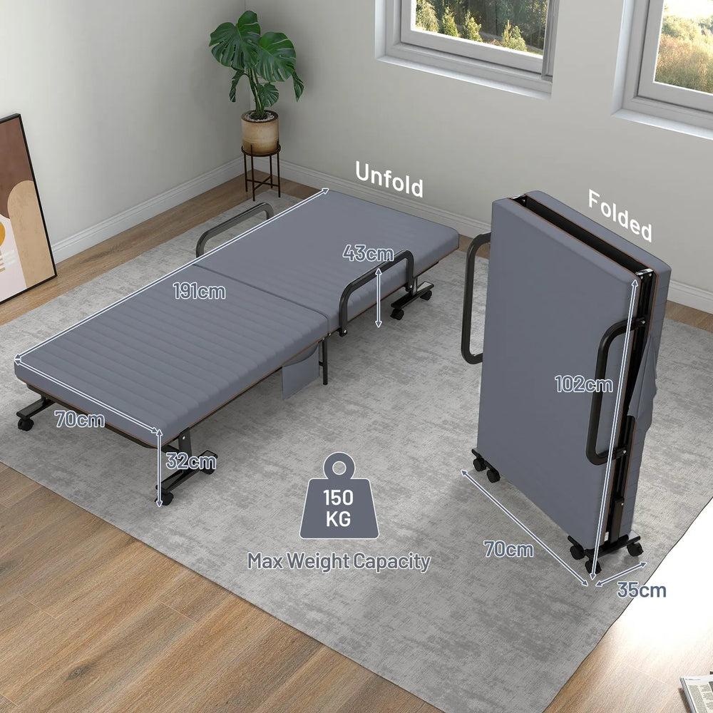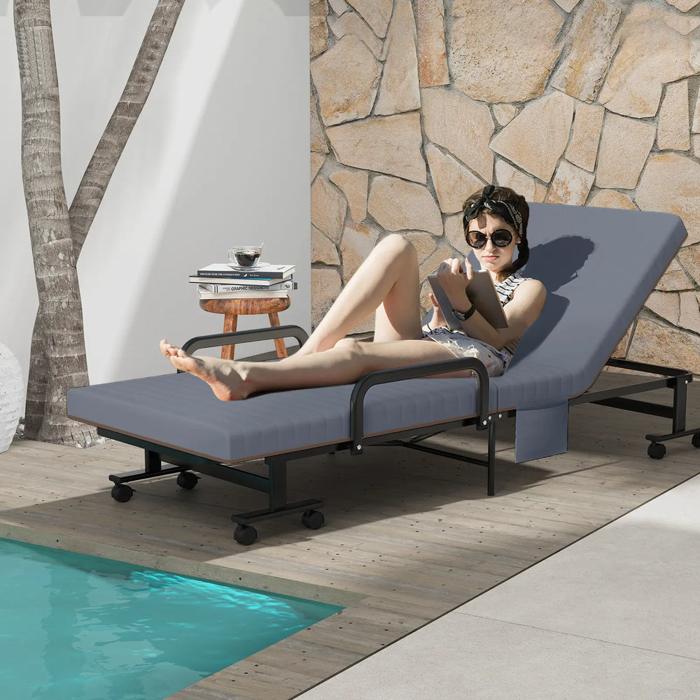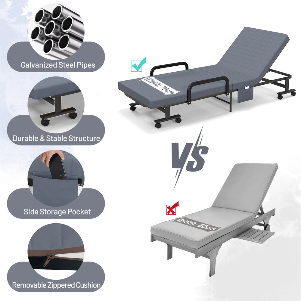 Adjustable Folding Guest Bed Frame with Mattress and Wheels-Gray