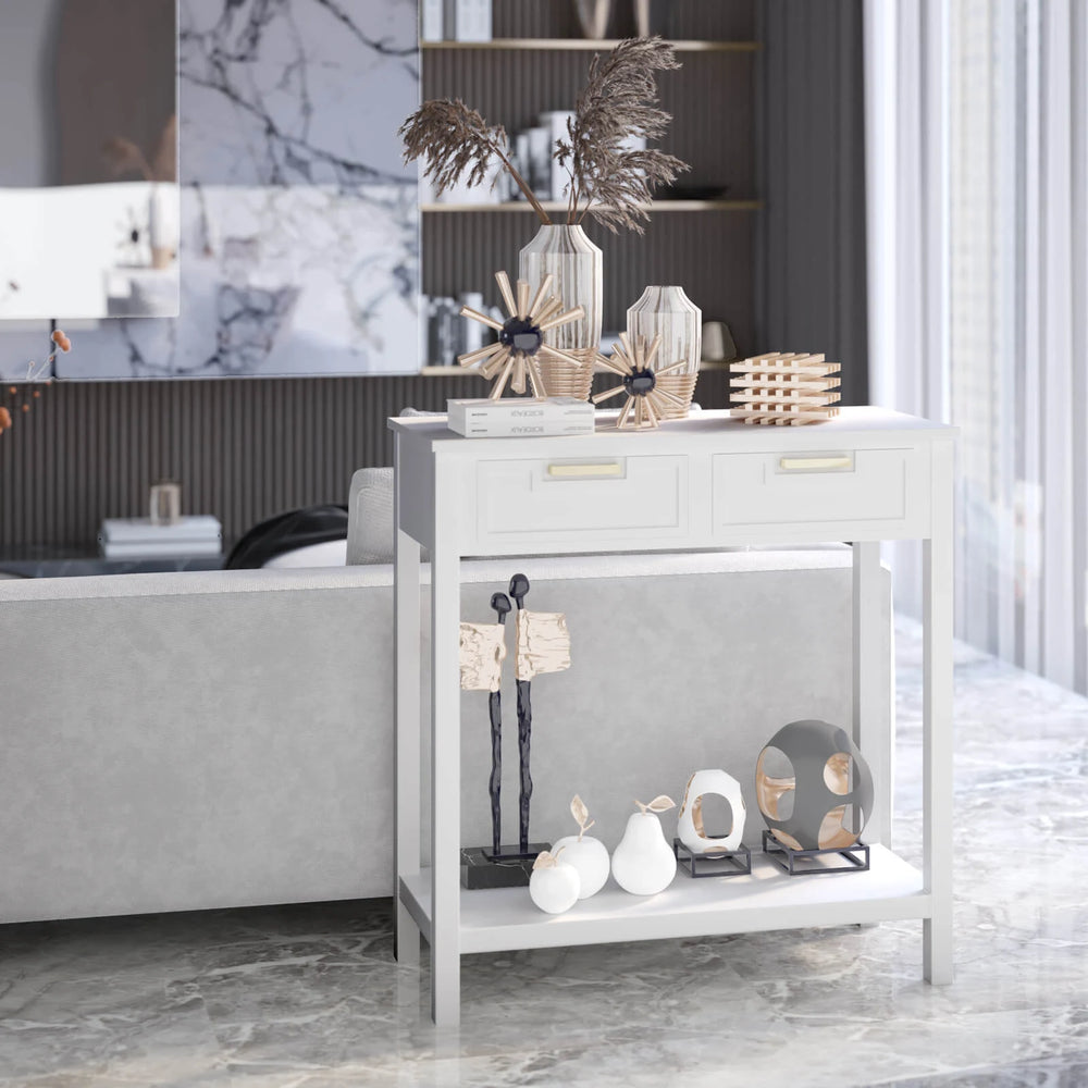 2 Drawers Accent Console Entryway Storage Shelf-White