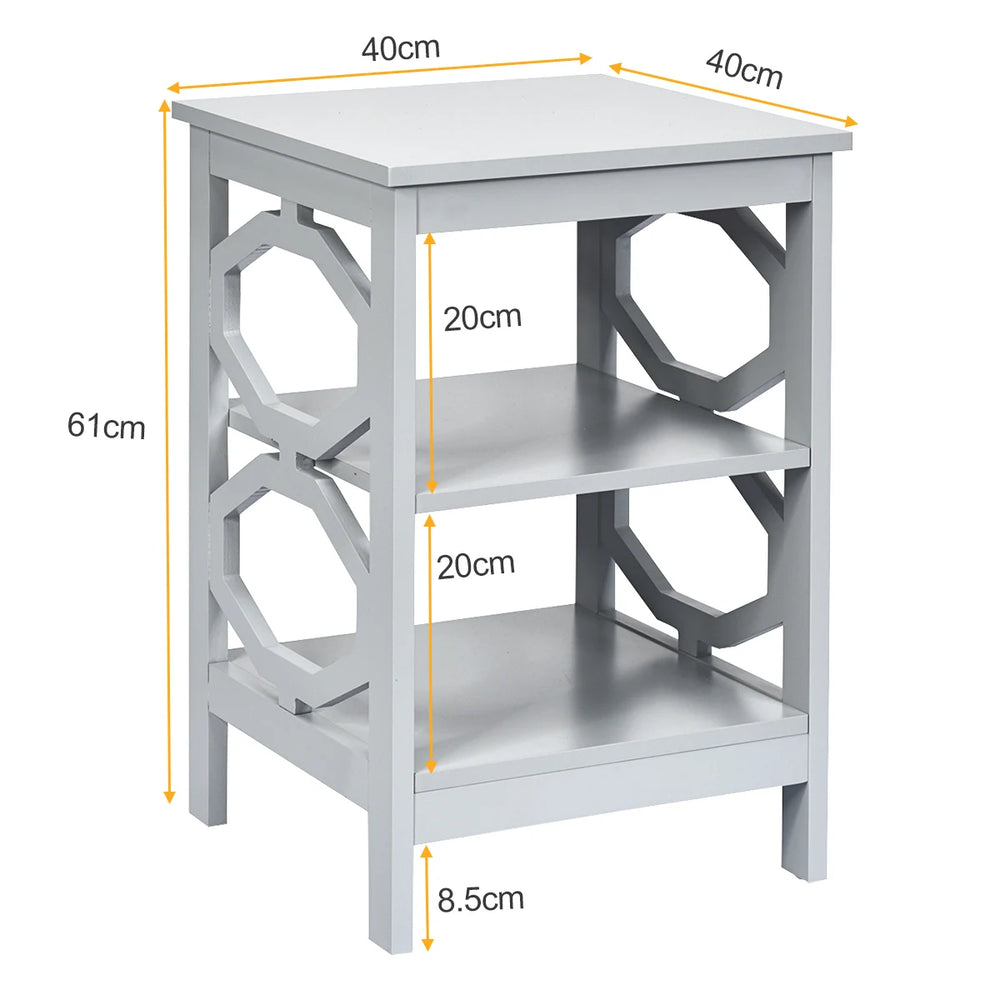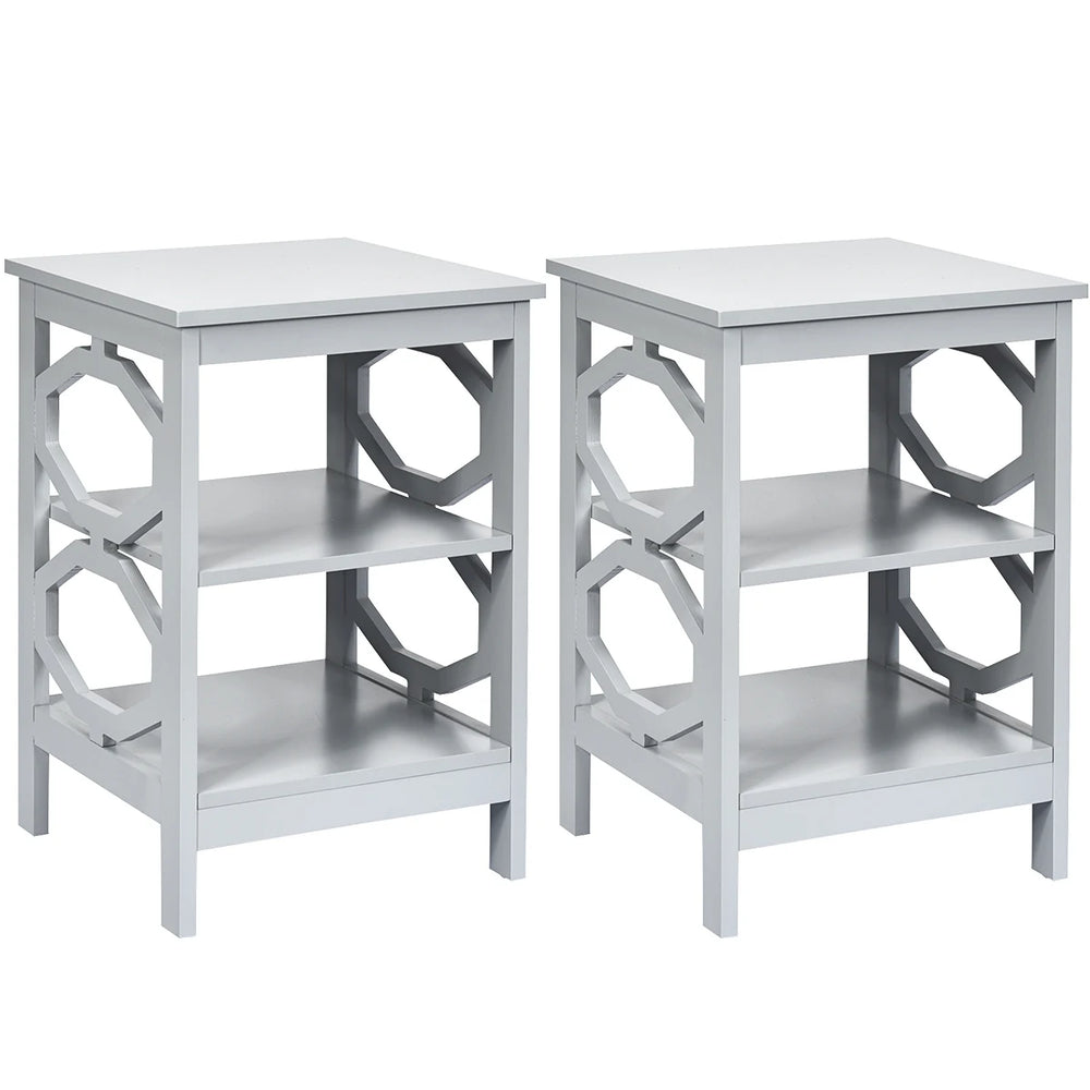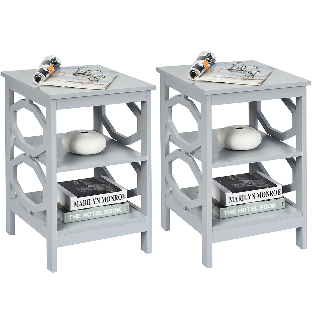 2 Pieces 3-tier Nightstand Sofa Side End Accent Table Storage Display Shelf-Gray