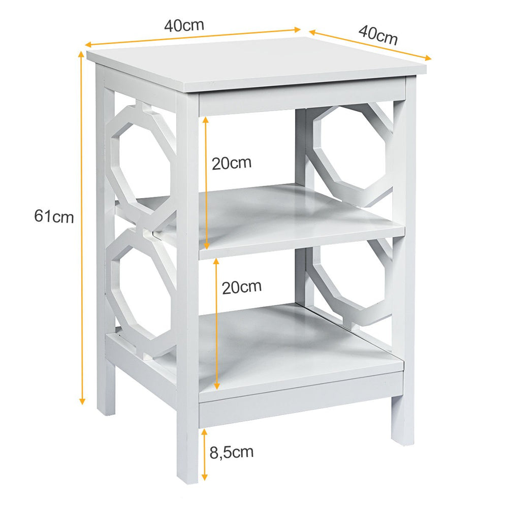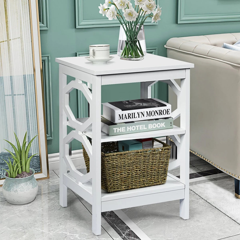 3-tier Nightstand Sofa Side End Accent Table-White