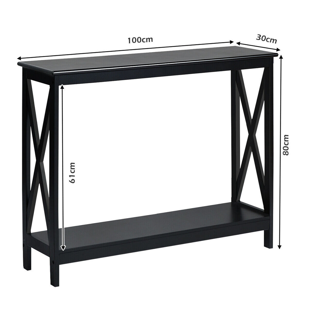 X-shaped side supports add visual interest while improving structural stability to reduce wobble. The two-tier layout gives you display space on top and everyday storage below without appearing bulky. The table’s clean black finish pairs easily with modern, industrial and minimalist decors.