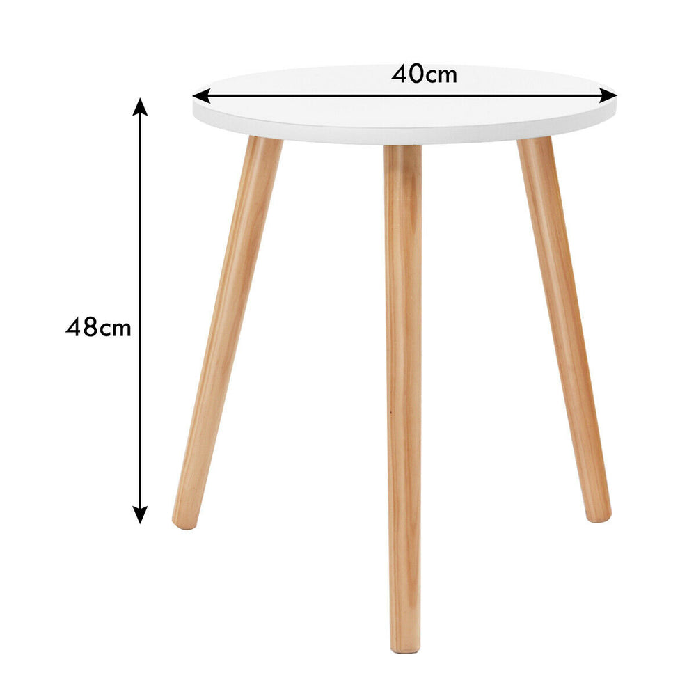 Built for light everyday use, the table combines a durable MDF tabletop with three solid pine legs joined by metal fixings for extra stability. The triangular leg arrangement keeps the table steady while remaining lightweight and simple to move, making it handy as an end table, bedside table or plant stand.