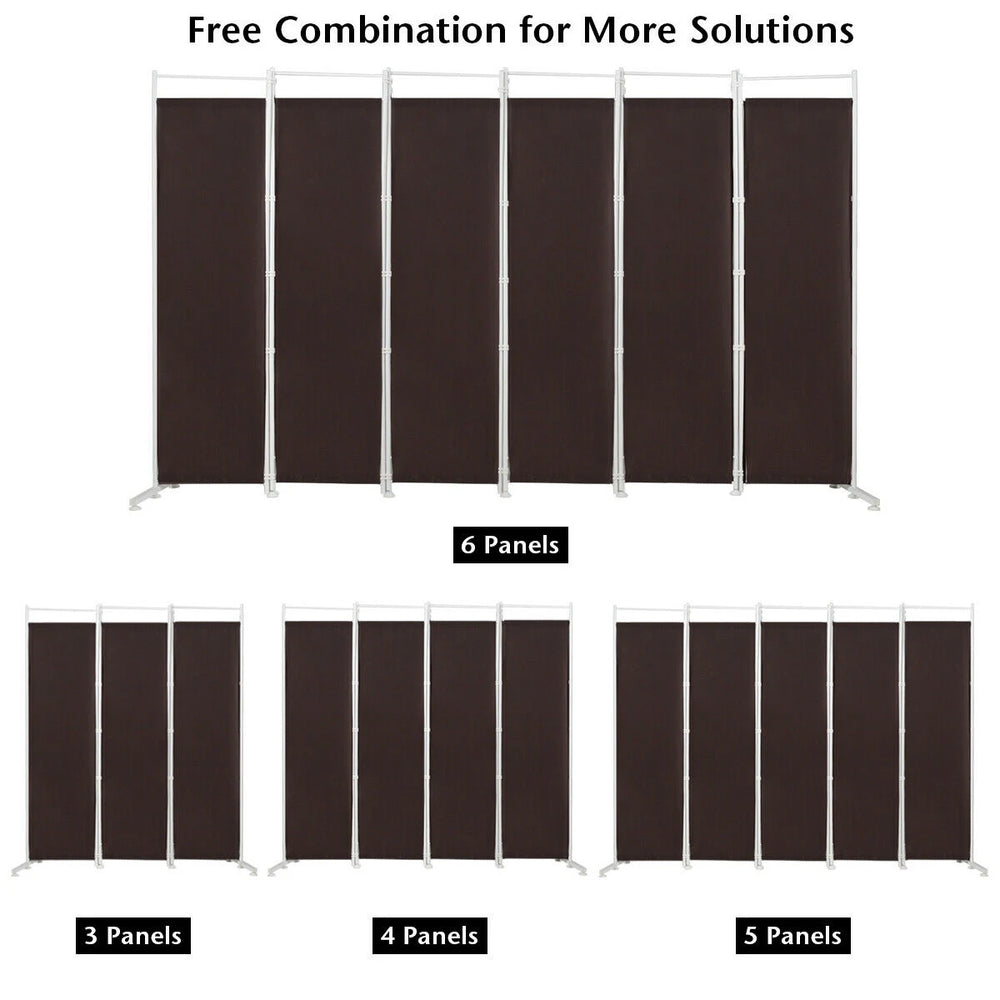 6-Panel Room Divider Folding Privacy Screen -Brown