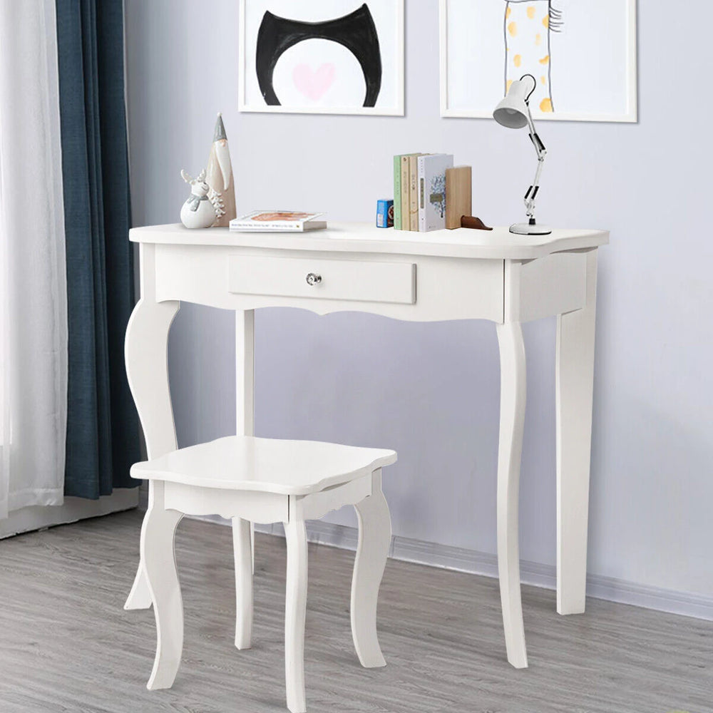 Kids Dressing Table Set with Stool & Mirror for Children Ages 3-7-White