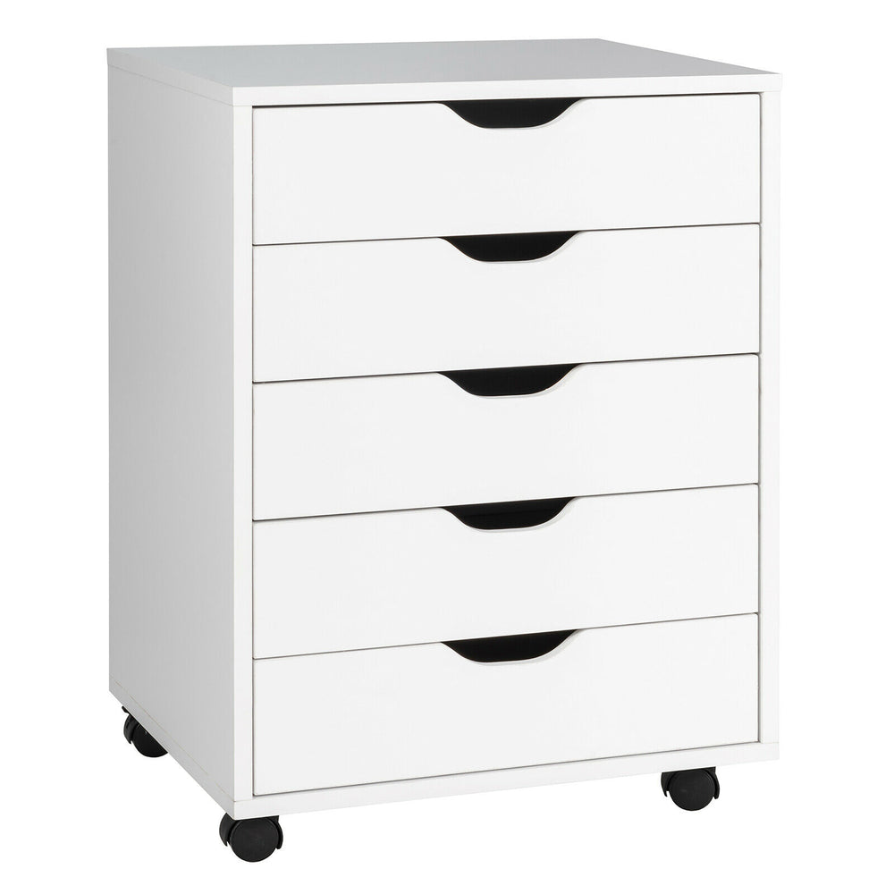 5 Drawer Mobile Lateral Filing Storage Home Office Floor Cabinet with Wheels-White