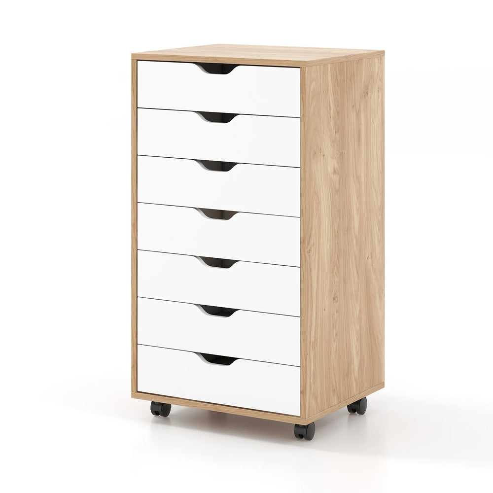 Mobile File Cabinet on Wheels with 7 Drawers-Natural