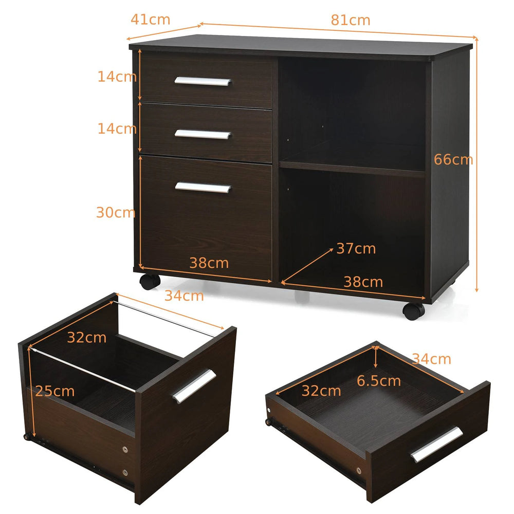 3-Drawer Mobile Lateral File Cabinet Printer Stand-Espresso