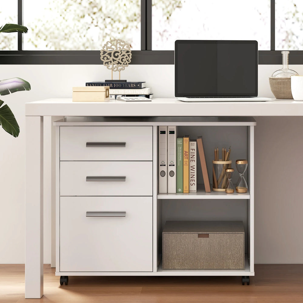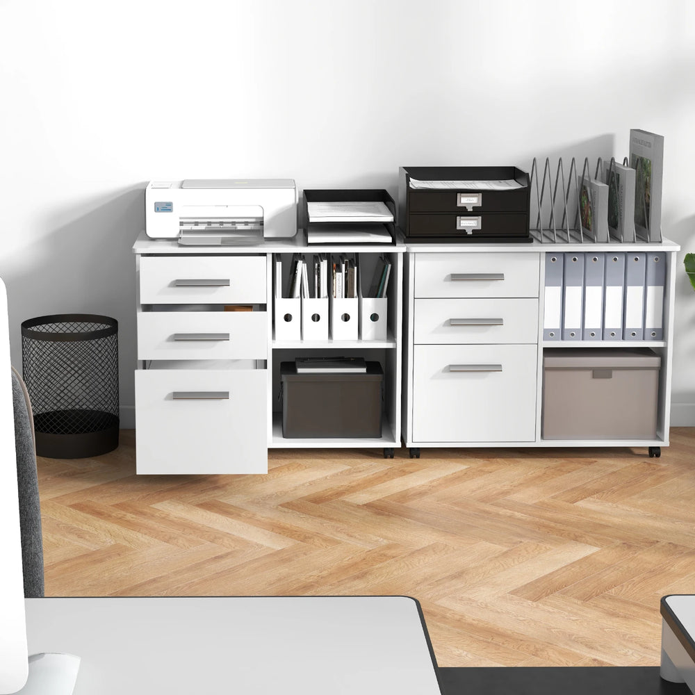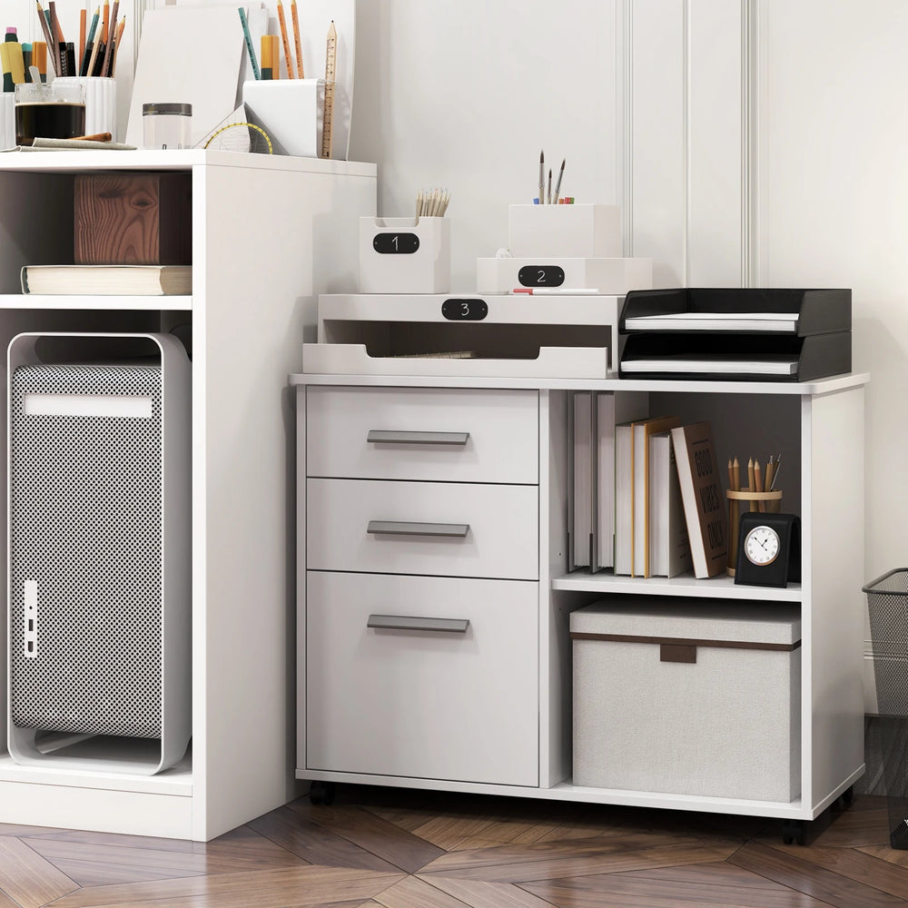 3-Drawer Mobile Lateral File Cabinet Printer Stand-White