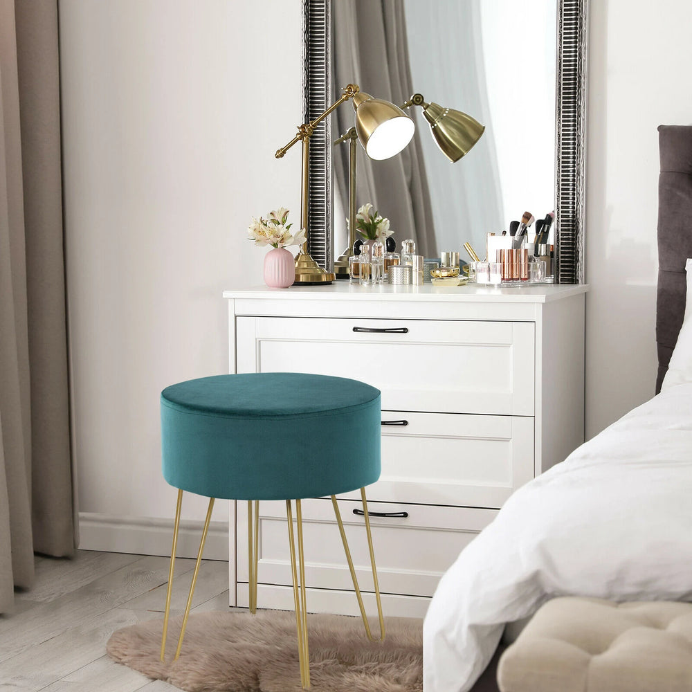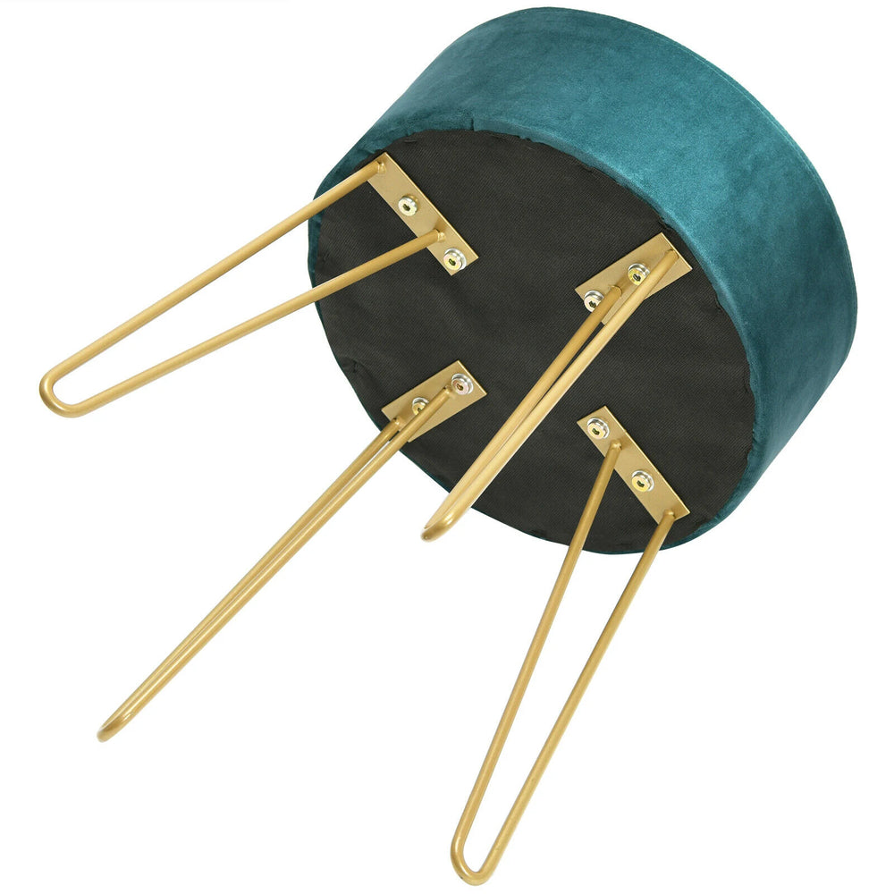Round Velvet Ottoman Footrest Table Dressing Chair with Metal Legs-Green