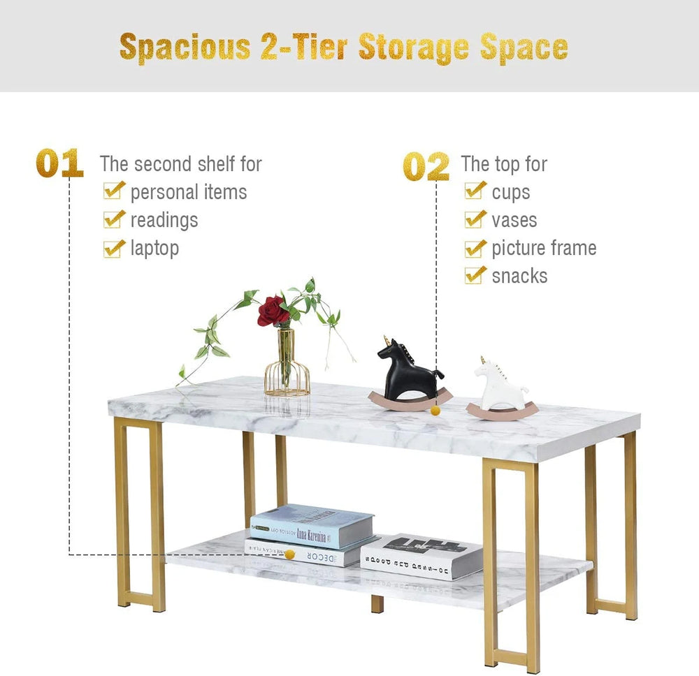This compact rectangular coffee table offers practical style for small living spaces. The two-tier design gives you a display surface plus a lower shelf for books, magazines and remotes, helping keep the room tidy without taking up much floor area. Its overall footprint is suited to apartment living or cosy seating arrangements.