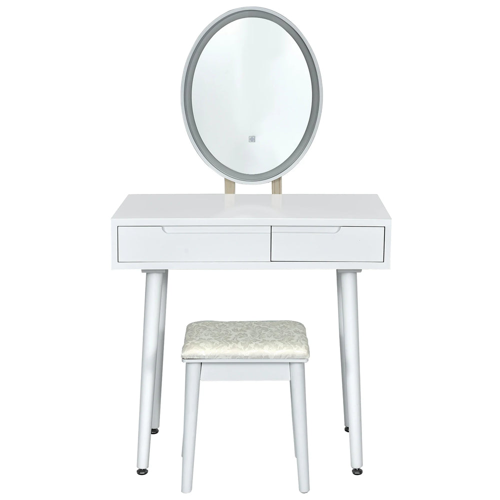 Vanity Table Set with Surrounded LED Tape Lights-White