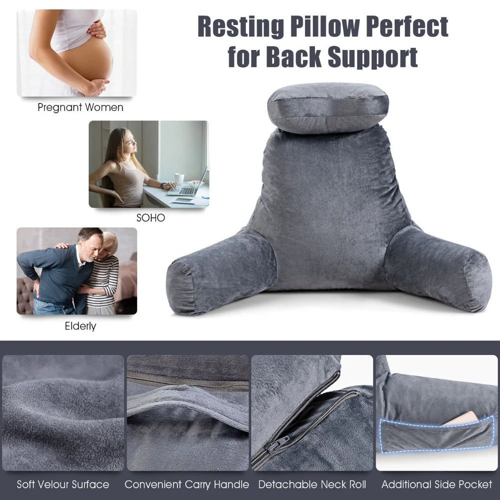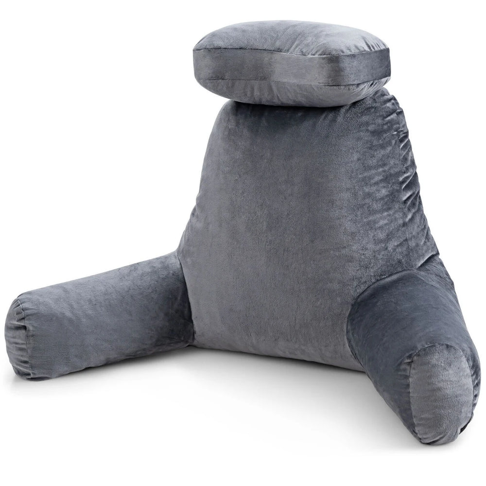 This oversized bed rest pillow wraps around you for cushioned support while reading, watching TV or relaxing in bed. The tall back and built-in wide armrests cradle your upper body to reduce neck and shoulder strain, making it ideal for long reading sessions or gaming on the floor.