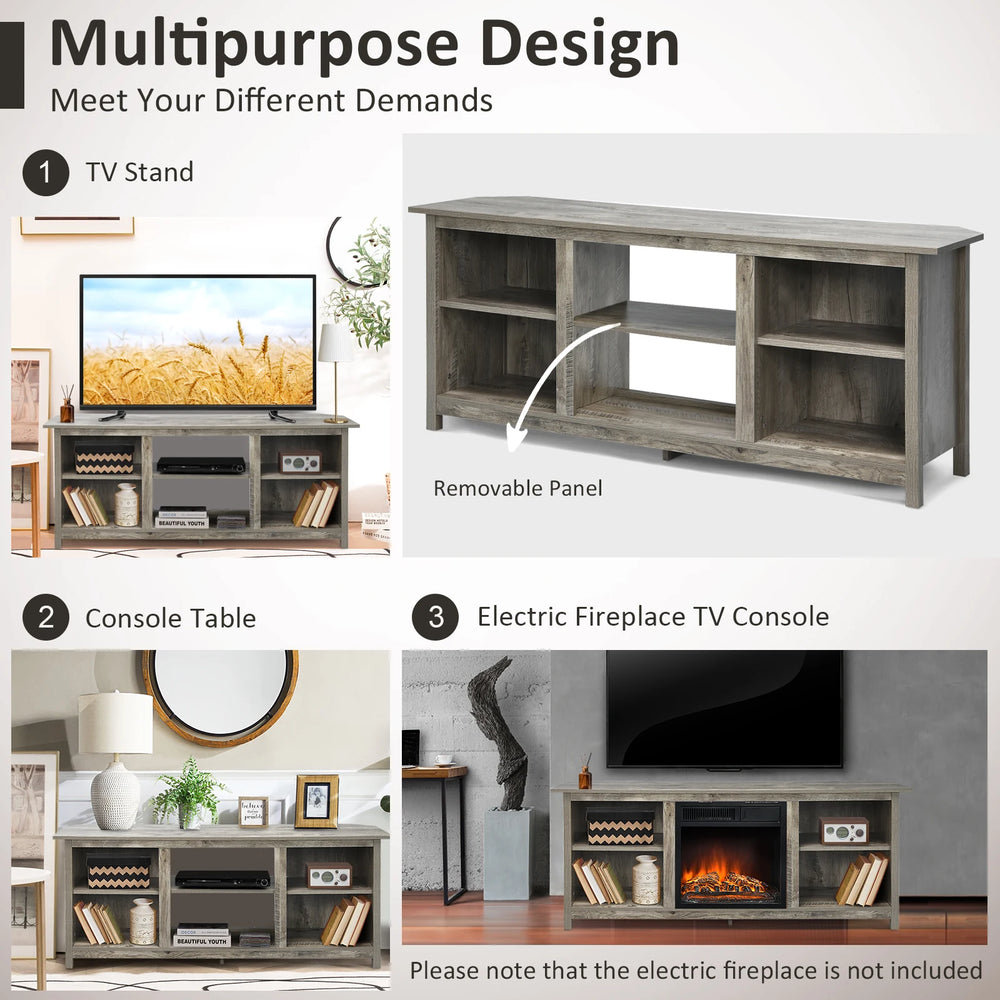 Color: Black/coffee Material: PB Product dimensions: 58" x 16" x 24" (L x W x H) Net weight: 55 lbs Weight capacity of Top: 40 lbs Weight capacity of middle shelf: 20 lbs Weight capacity of bottom shelf :40 lbs Package includes: 1 x TV stand 1 x Instructions