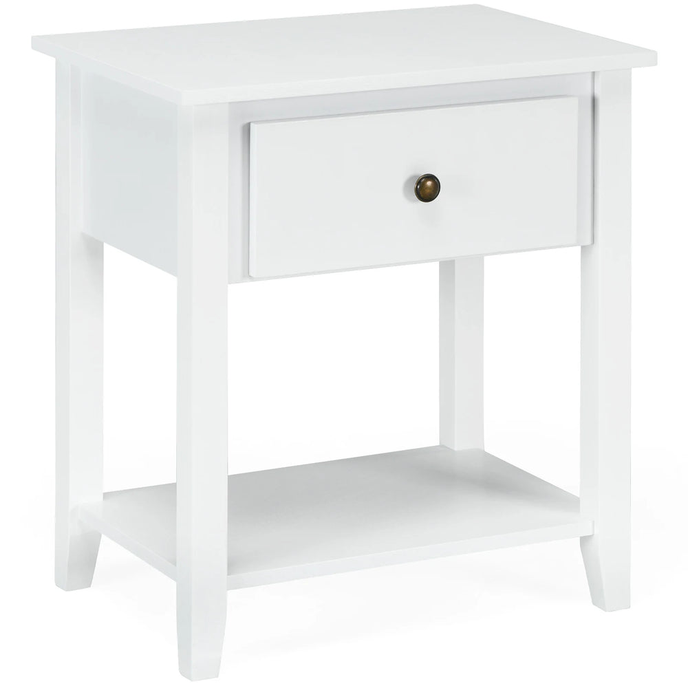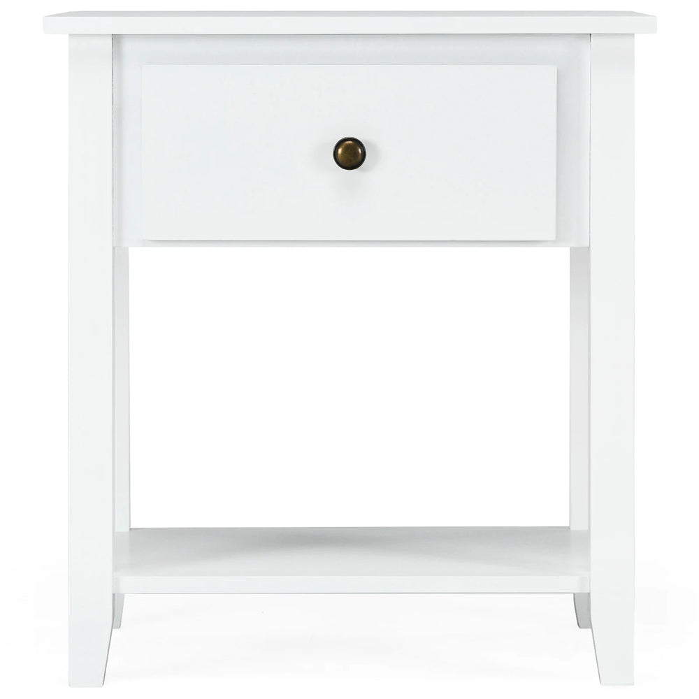 Bedside Tables with Drawer and Storing Shelf for Bedroom/Living Room/Bathroom/Office-White-1 piece