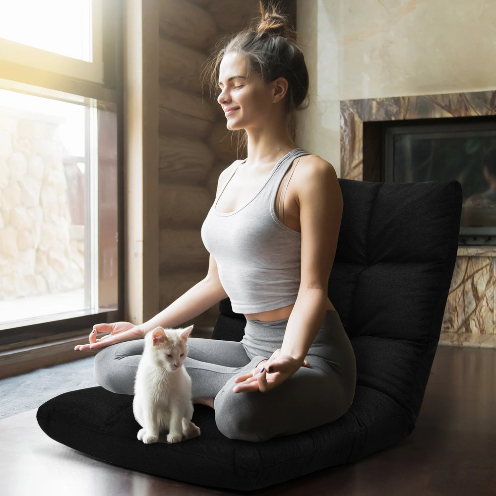 Color: Black Material: Cotton and linen fabric, steel Dimension: 42"x 21"x 4"(L x W x H) Net weight: 9.5 lbs Weight capacity: 264 lbs Package includes: 1 x Floor chair