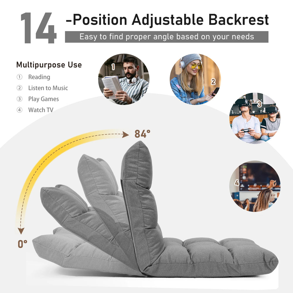 14-Position Adjustable Folding Lazy Gaming Sofa-Gray