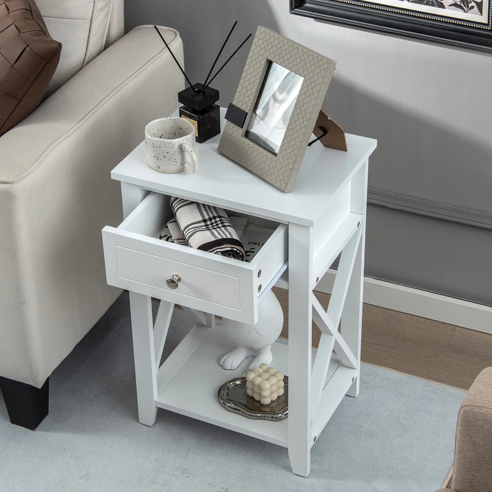 Storage End Bedside Drawer Nightstand w/ Bottom Shelf-White