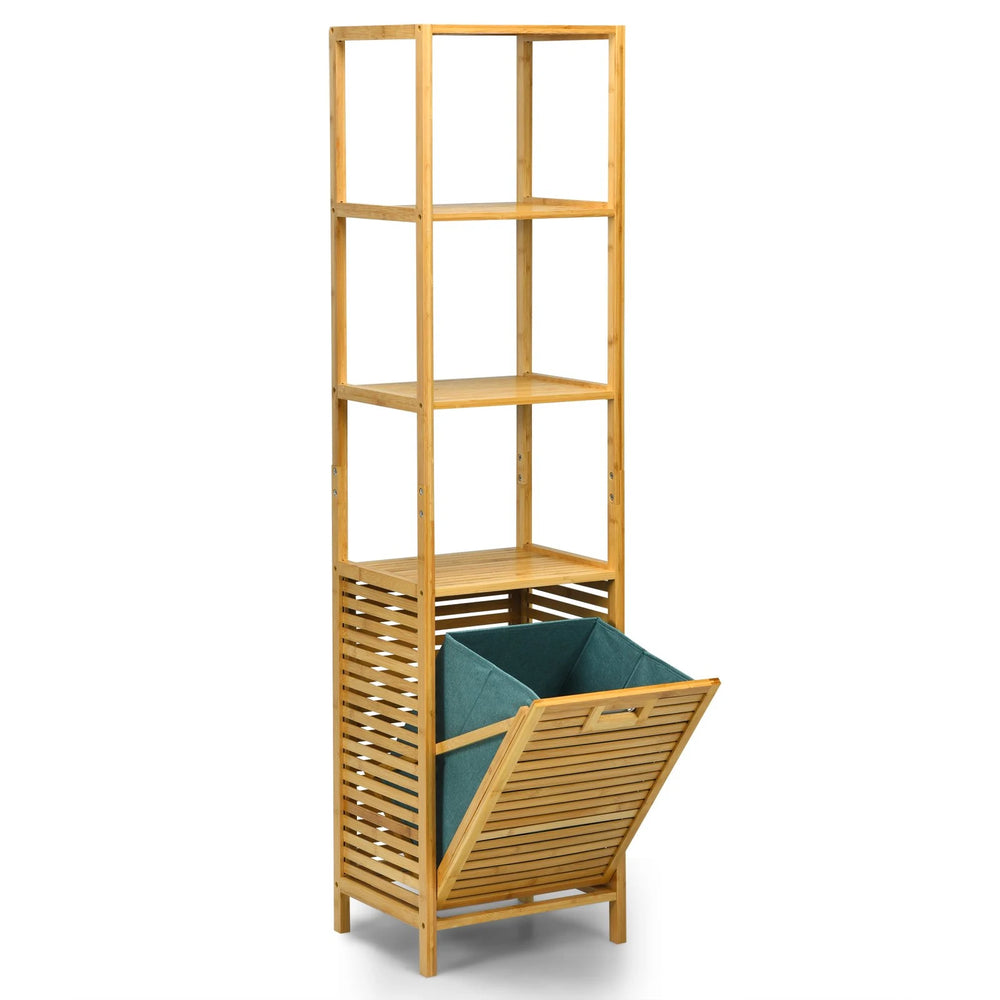Bamboo Tower Hamper Organizer with 3-Tier Storage Shelves-Natural