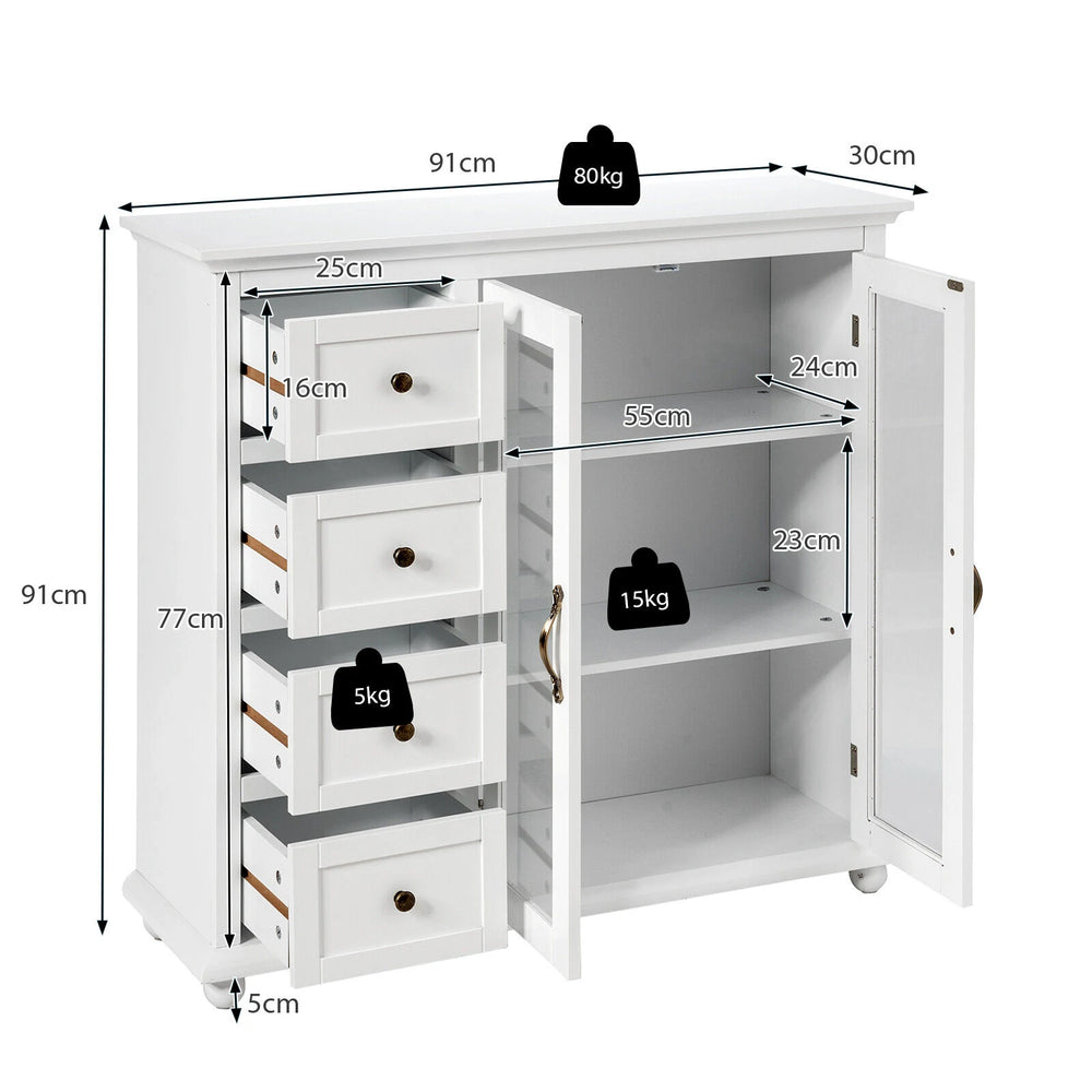 2-Door Wooden Buffet Sideboard with 4 Drawer-White