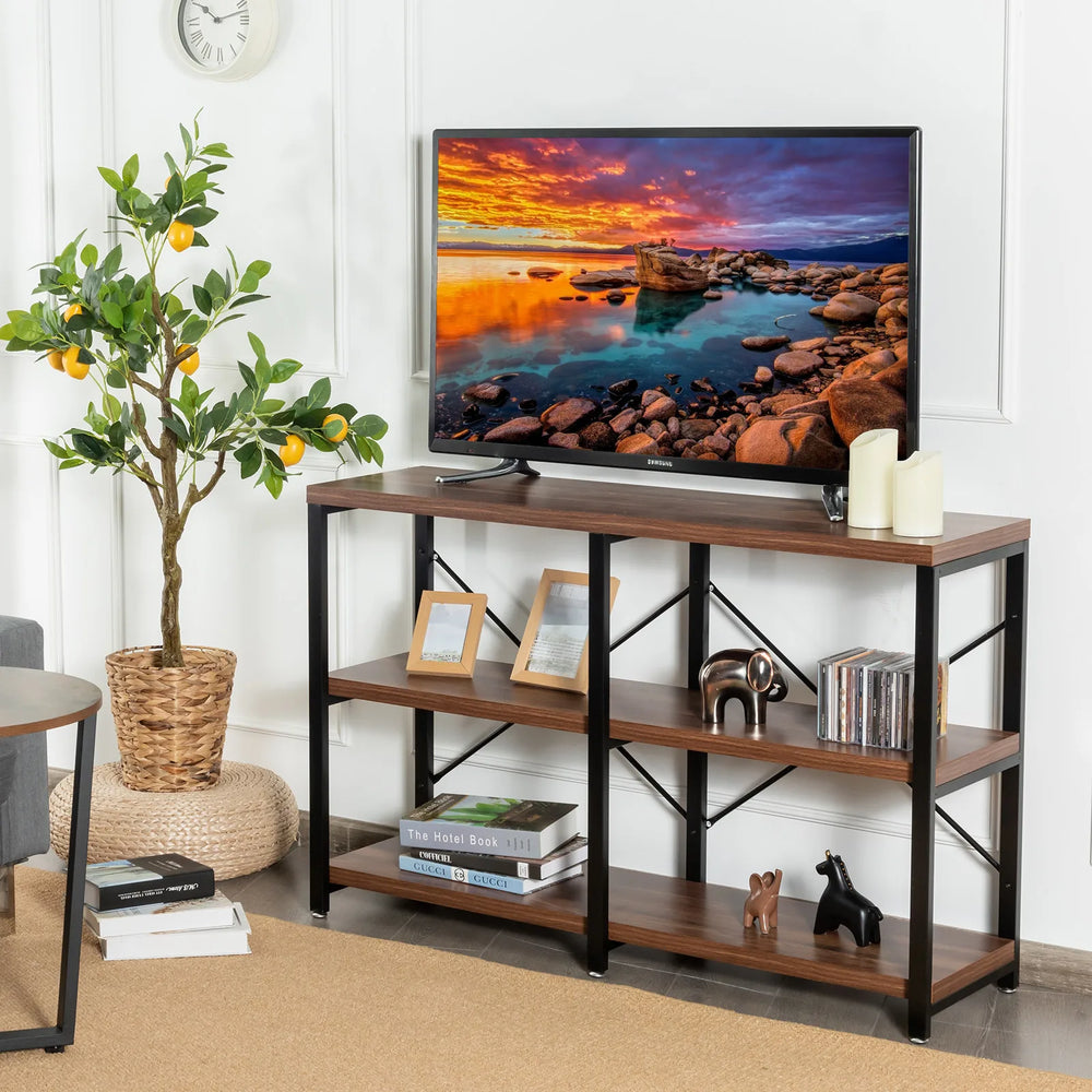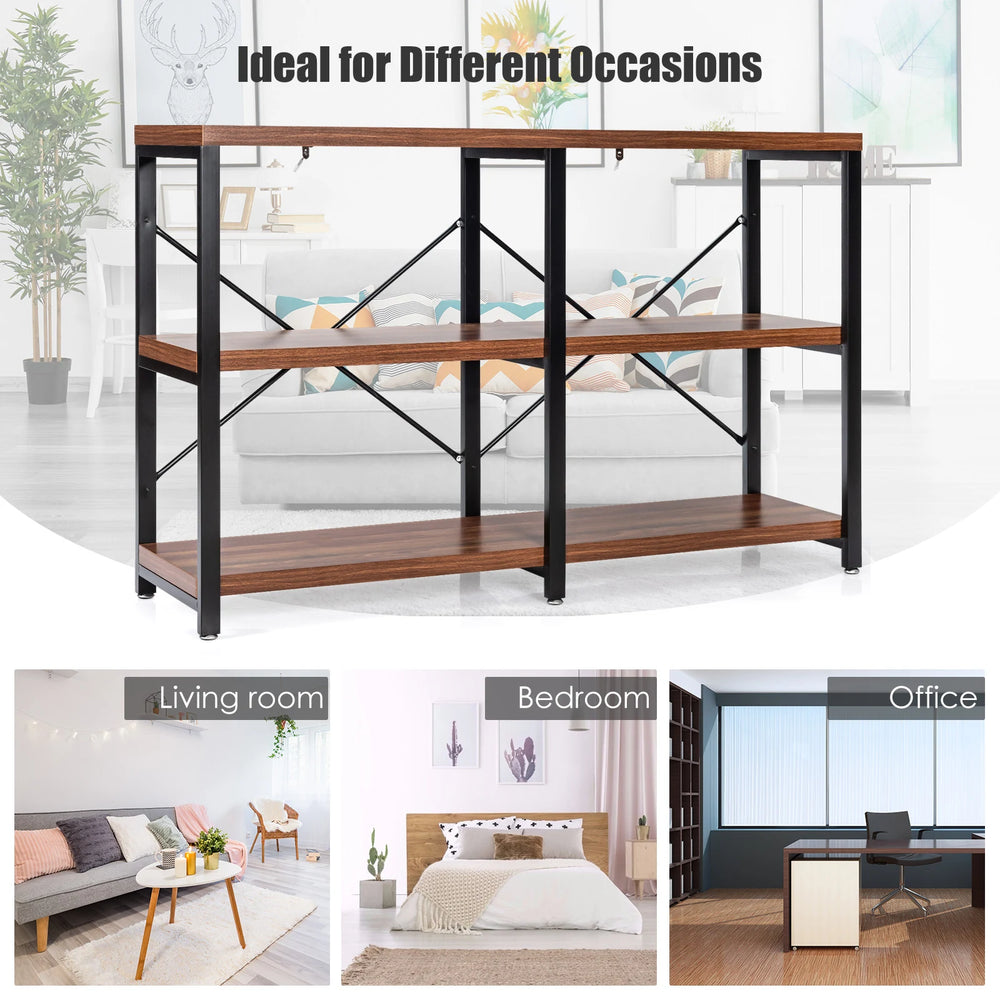 3 Tier 47 Inch Console Metal Frame Sofa Table-Rustic Brown