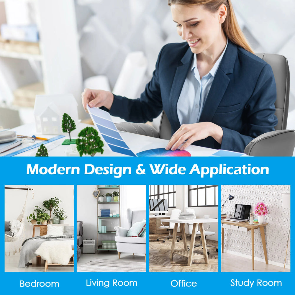 Sit comfortably for sedentary work or study with our ergonomic mid-back office leisure chair! Supported by a heavy-duty metal base with a high-quality SGS-certified gas rod, this armchair is sturdy enough to hold up to 120 kg. Ergonomic design perfectly conforms to the curve of the body to achieve optimal comfort. You will sit comfortably and feel relaxed with a high backrest, thick padded seat cushions and armrests. The smooth PU cover is easy to clean while offering you a soft touch. What's more, the seat height and backrest can be easily adjusted to meet your ideal position. 5 flexible wheels on the metal base offer easy and smooth motion. This modern and multifunctional swivel chair is a perfect addition to the office, study, living room and more! Bullet Point: Swivel Seat with Adjustable Height: The office chair supports a 360 horizontal rotation which allows you to talk with people around you freely without getting up. Moreover, the seat height can be adjusted from 46 to 53.5 cm to fit well with desks of different heights. And the tilt mechanism enables you to lean back for extra comfort. Ergonomic Backrest & Armrests: Equipped with an extra wide backrest, this leisure chair can perfectly fit the curve of the human body and give strong support to your neck, back and waist. Additionally, the soft padded arc armrests can greatly relax your hands. You can surely feel relaxed when sitting on the chair even for a long time. High Quality & Durable Materials: This swivel chair is upholstered with thick cushions which are filled with high-density sponge and covered with smooth PU leather for upgraded comfort. What's more, the chair comes with a high-quality SGS-certified gas rod, which ensures high safety and stability for long-lasting use. Sturdy Base with 5 Swivel Casters: Solid metal frame with a heavy-duty 5-claw base ensures great stability and sturdiness, which makes the office chair strong enough to support up to 120 kg. In addition, equipped with 5 flexible universal rolling casters, this chair provides smooth and silent movement in all directions. Modern Style & Multipurpose Design: Featuring a simple yet stylish design, this swivel chair is a good addition to your home or office and can add a sense of fashion to your living space. This chair can not only be used as a leisure chair to relax but also can be used as a computer desk chair when you need to work or study. Features: Adjustable seat height to match tables of different heights The heavy-duty metal structure ensures great sturdiness and stability Smooth PU leather is waterproof, wear-resistant and easy to clean High-quality SGS-certified gas rod provides strong support and safety Ergonomic design with high back, thick padded armrests and seat Can be used as a home computer chair, gaming chair or office chair The tilt mechanism allows you to lean back for comfortable resting Smooth-rolling casters make it convenient for moving around 360-degree swivel seat for multi-tasking convenience Maximum loading capacity reaches up to 120 kg Easy to assemble with the detailed instruction Specifications: Colour: Grey Material: PU, metal, polyester foam, sponge Product dimensions: 67 x 67 x 85 92.5 cm (L x W x H) Net weight: 13 kg Weight capacity: 120kg Package Includes: 1 x Office chair 1 x Instruction