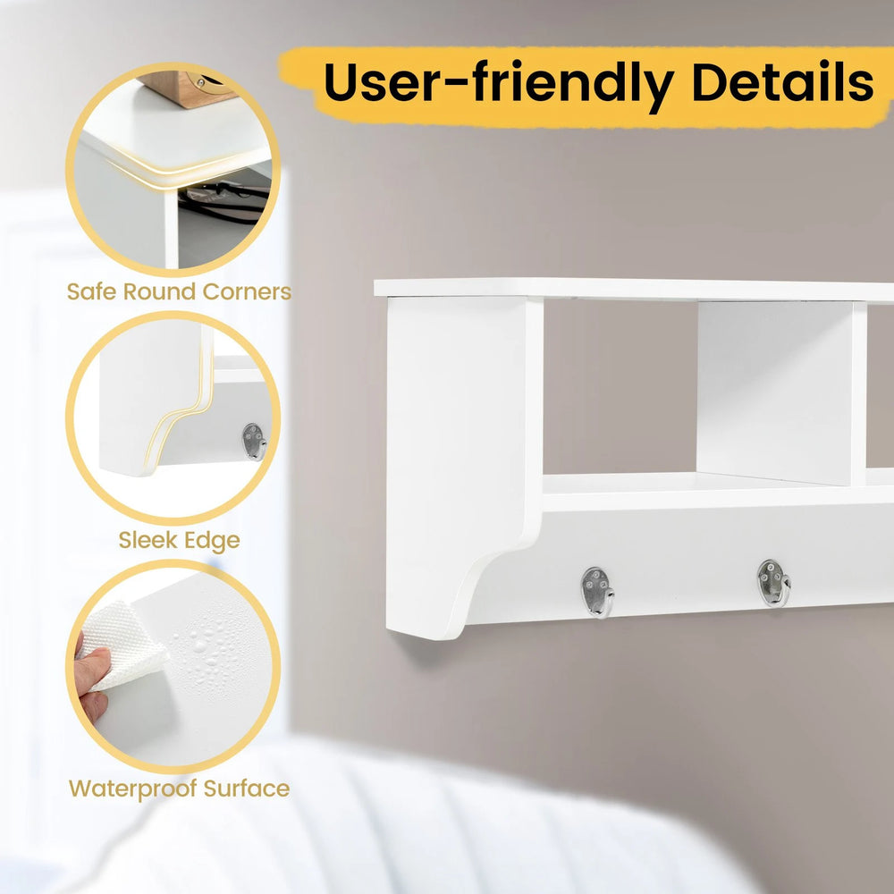 Wall Mount Cubby Organizer Hooks Entryway Storage Shelf-White