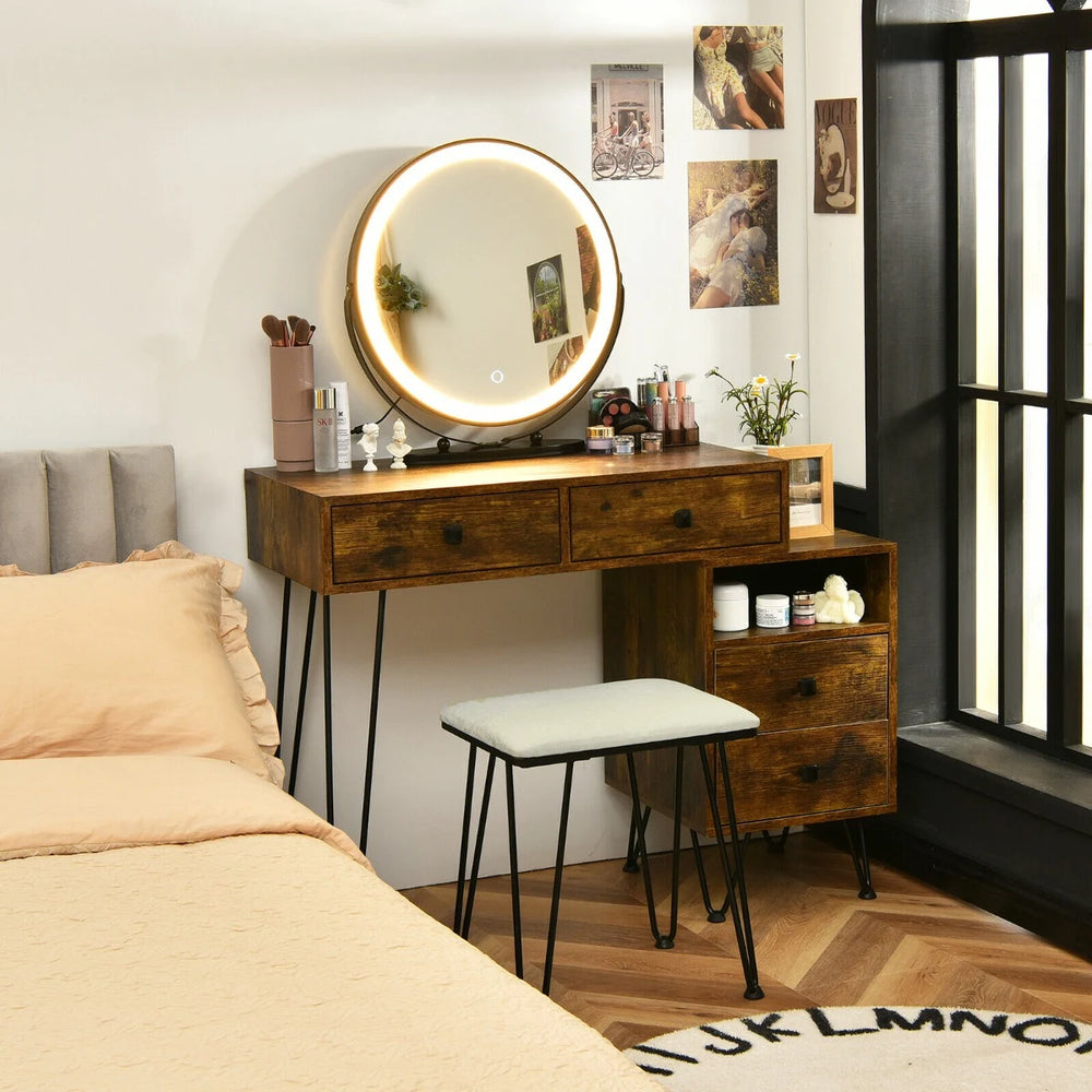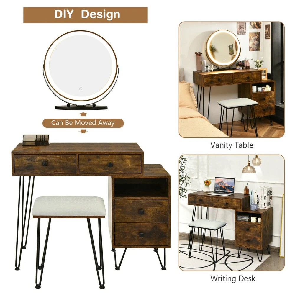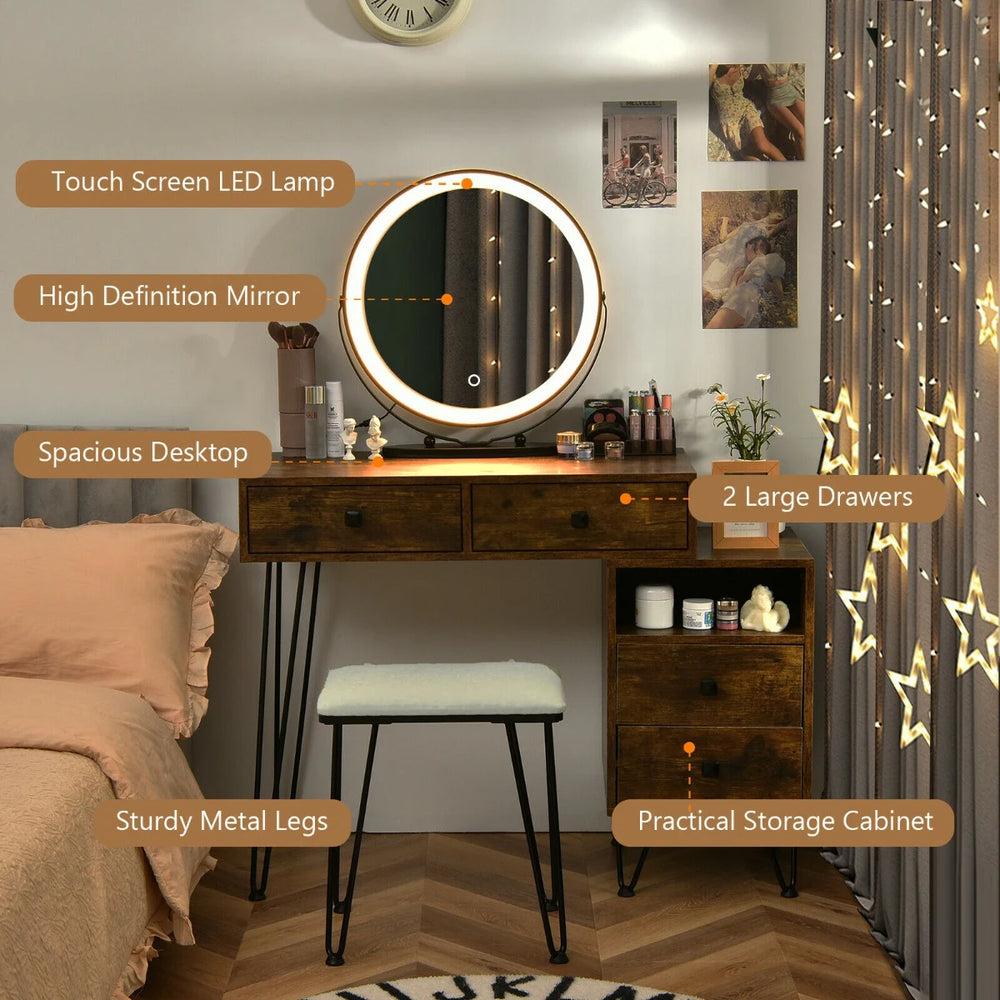 3 Modes Vanity Dressing Table with 3 Color Detachable LED Mirror-Brown