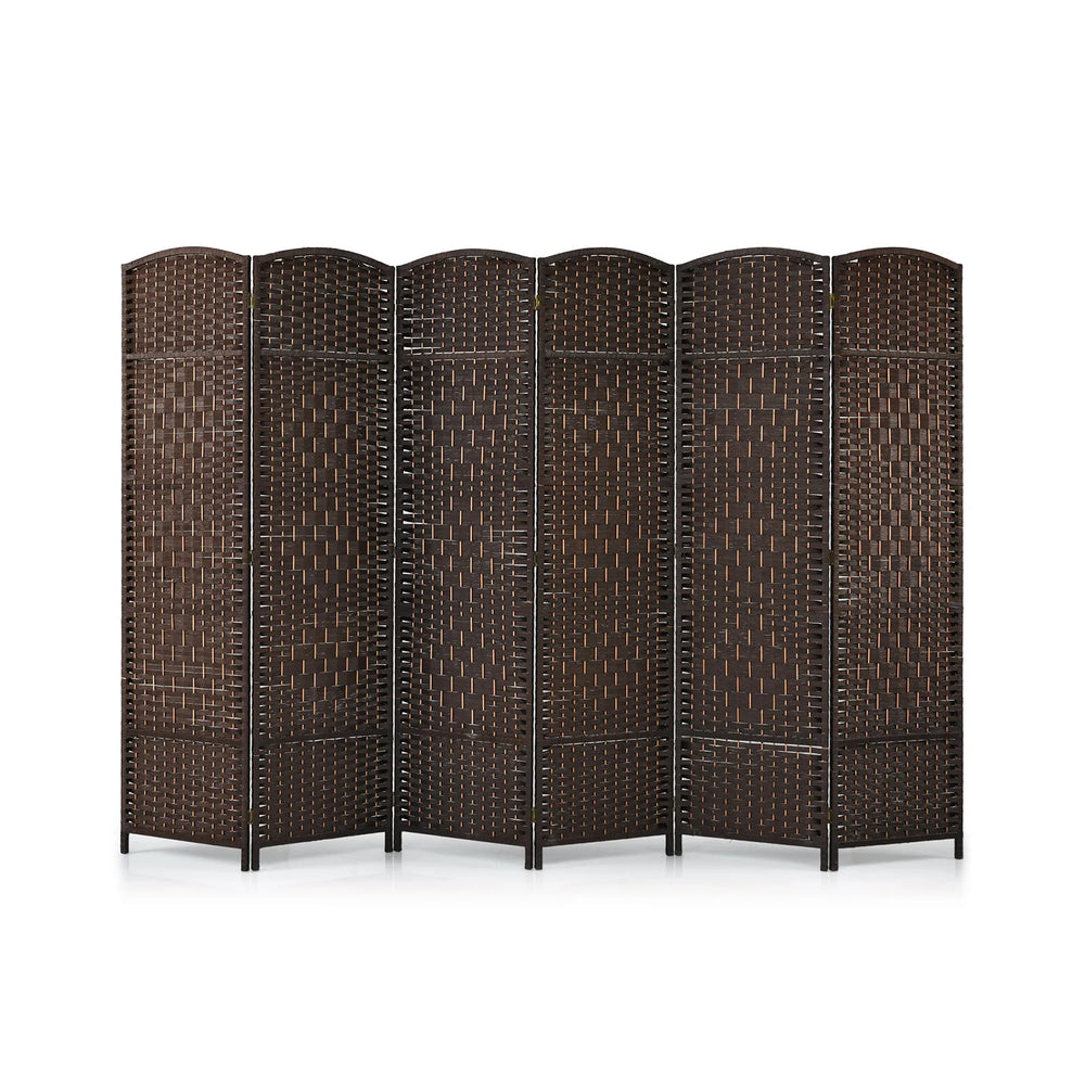 This six-panel folding room divider uses hand-woven fibre rattan set in a poplar frame to create an attractive, durable screen that defines private areas at home. The unfolded divider measures 180 cm high and 270 cm wide, giving substantial coverage for bedrooms, living rooms, dining spaces or patio corners.