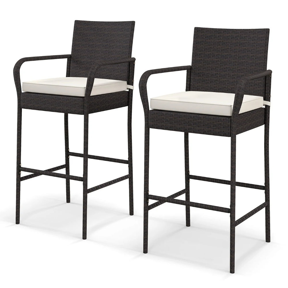 2/4 Pieces Outdoor PE Rattan Cushioned Barstool Set with Armrests-Set of 2