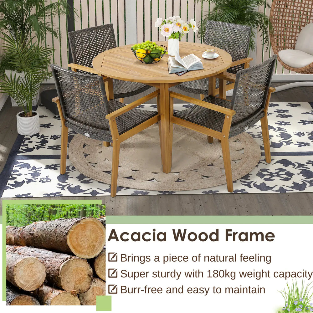 Set of 4 Outdoor Rattan Chair with Sturdy Acacia Wood Frame-Set of 4