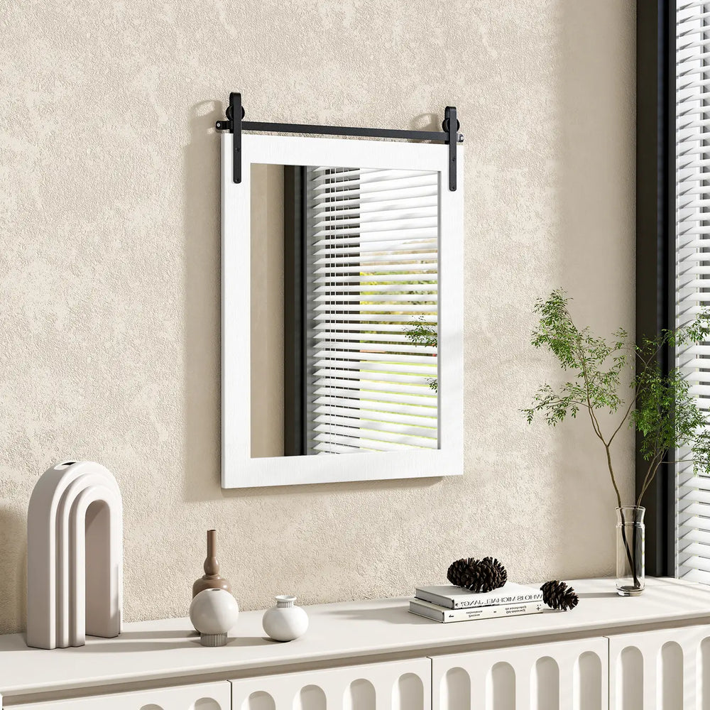 30 x 22 Inch Wall Mount Mirror with Wood Frame-White