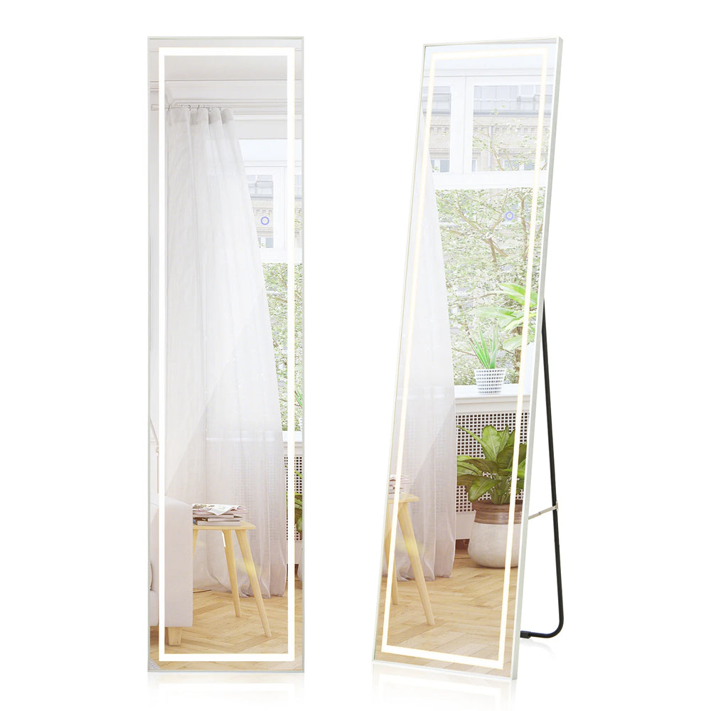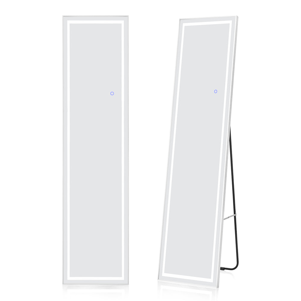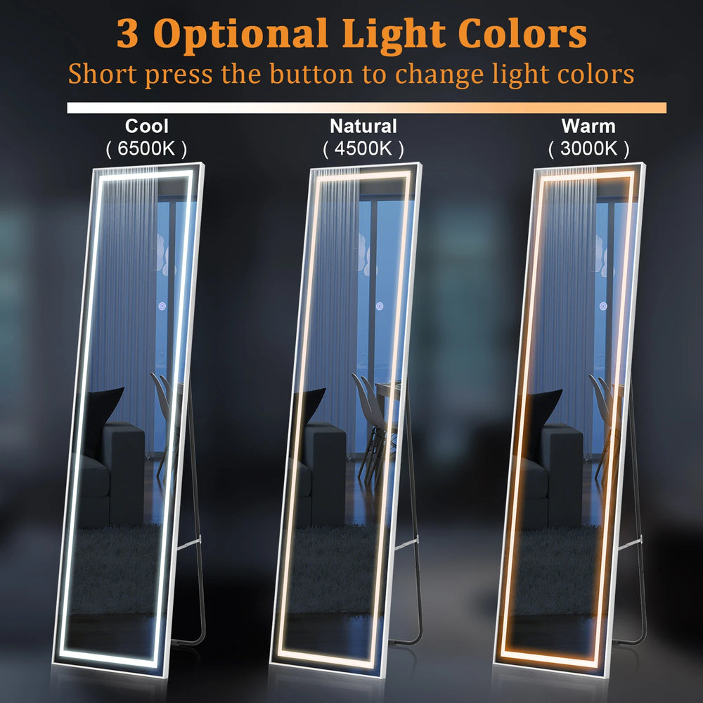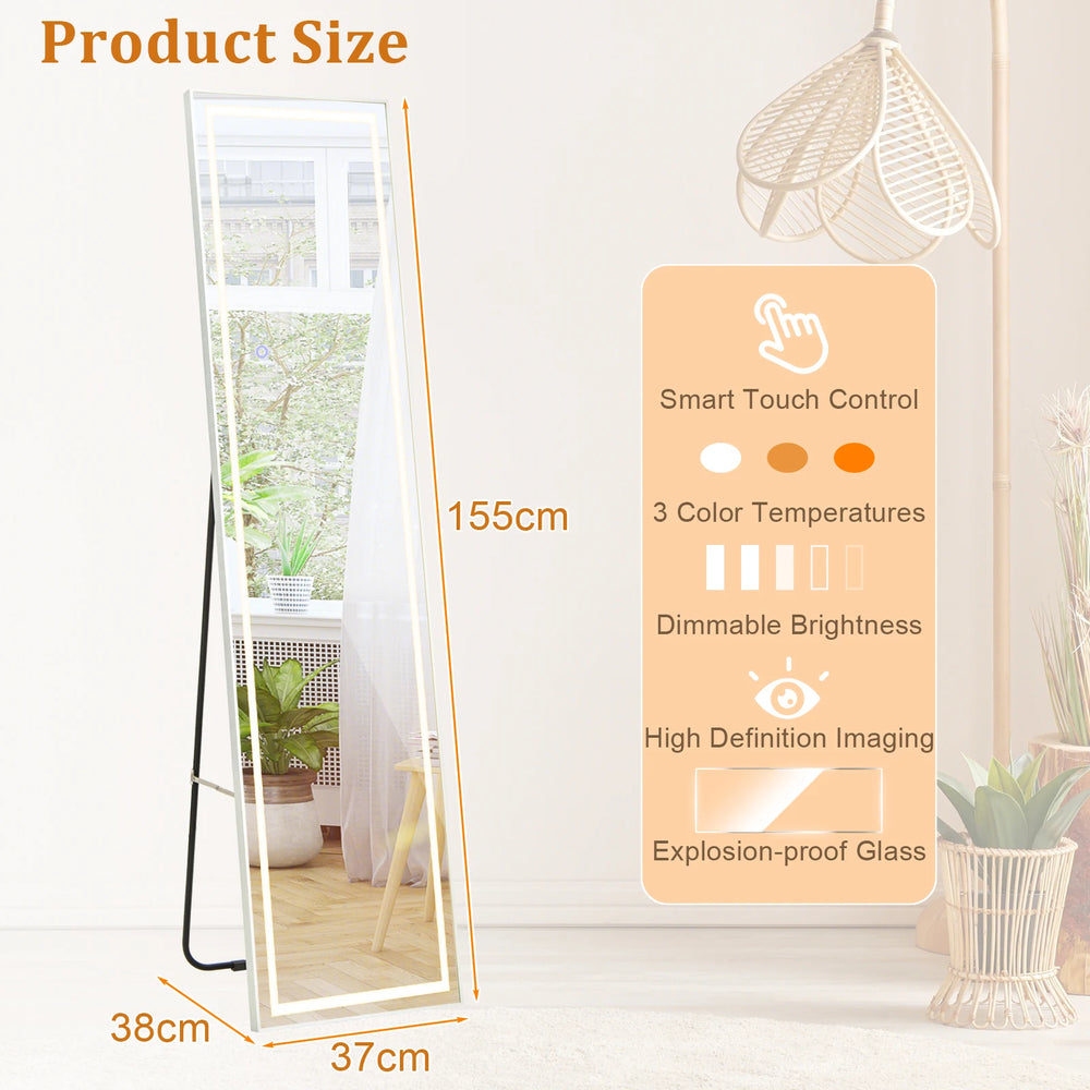 LED Lighted Full Length Mirror with Dimming and 3 Color Lighting-White
