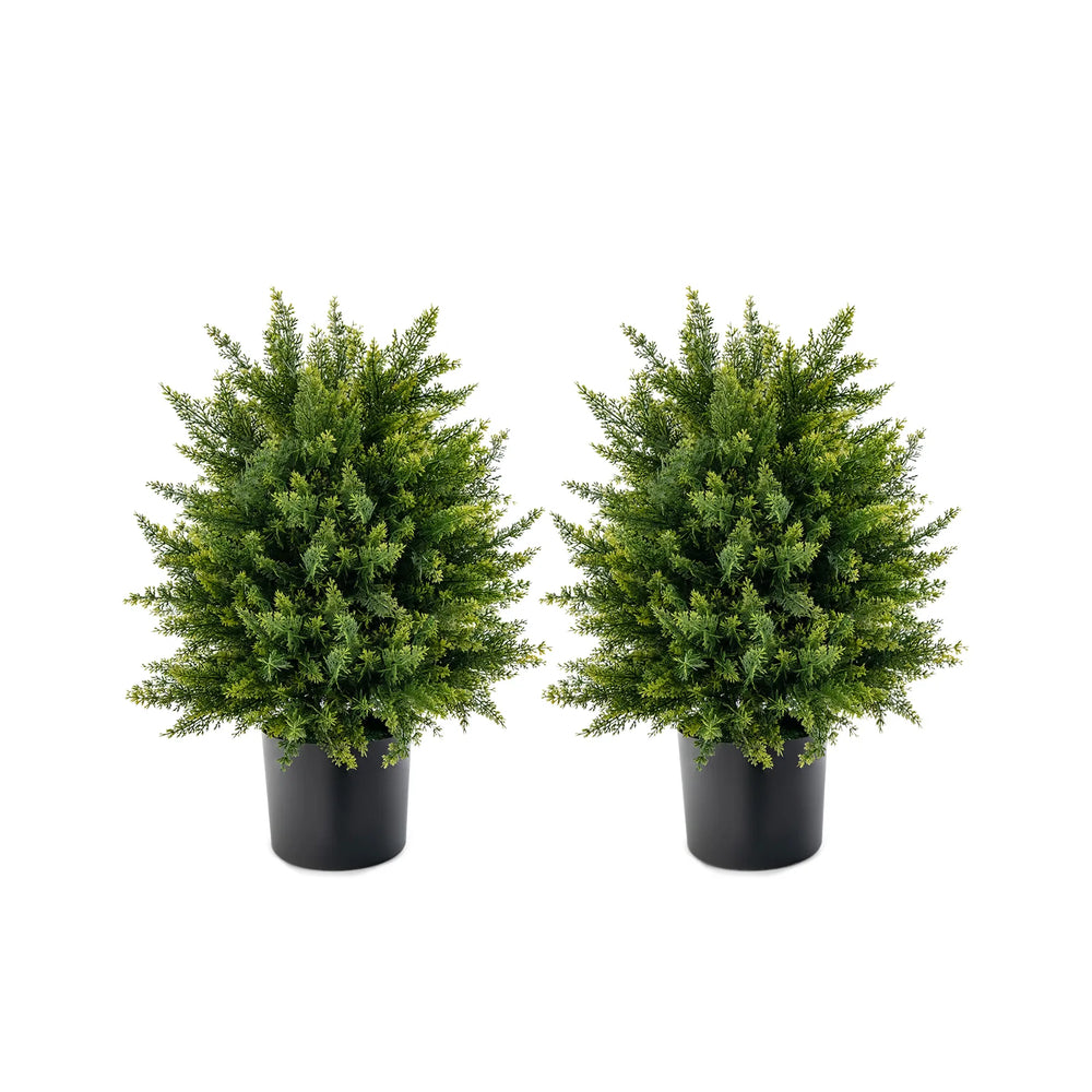 2-Pack Artificial Cedar Topiary Ball Tree with Cement Pot