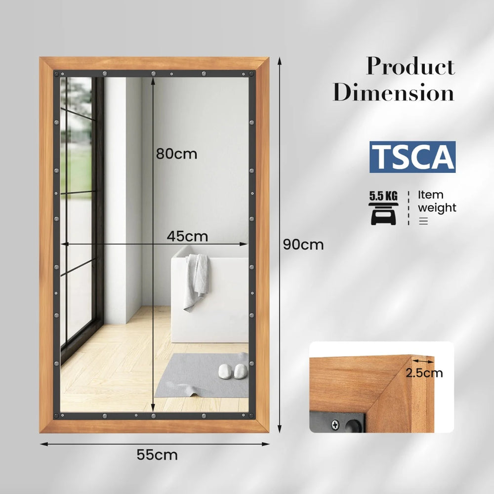 22 x 36 Inch Rectangular Frame Decor Wall Mounted Mirror with Back Board-Natural