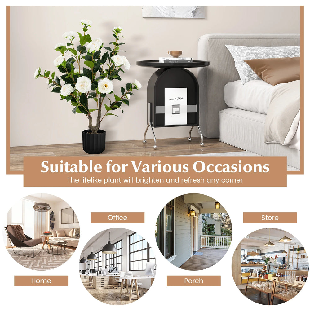 38 Inch Artificial Camellia Tree Faux Flower Plant in Cement Pot-White