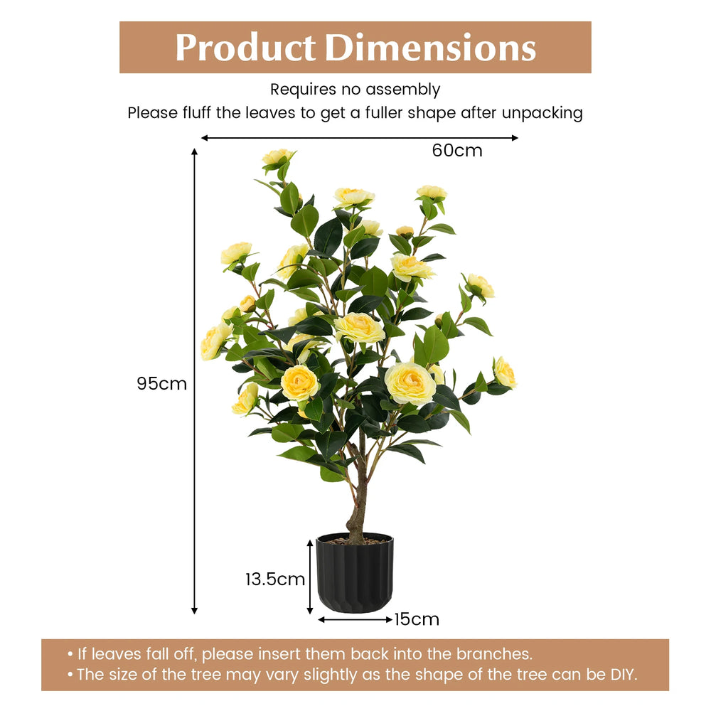 38 Inch Artificial Camellia Tree Faux Flower Plant in Cement Pot-Yellow is backordered and will ship as soon as it is back in stock.