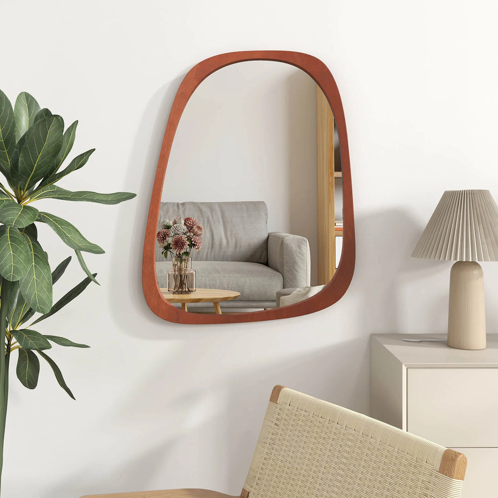 Asymmetrical Abstract Irregular Shaped Wall Mirror with Rustic Frame-Natural