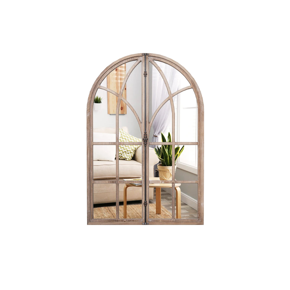 Wall Mounted Arched Window Pane Mirror-Natural is backordered and will ship as soon as it is back in stock.