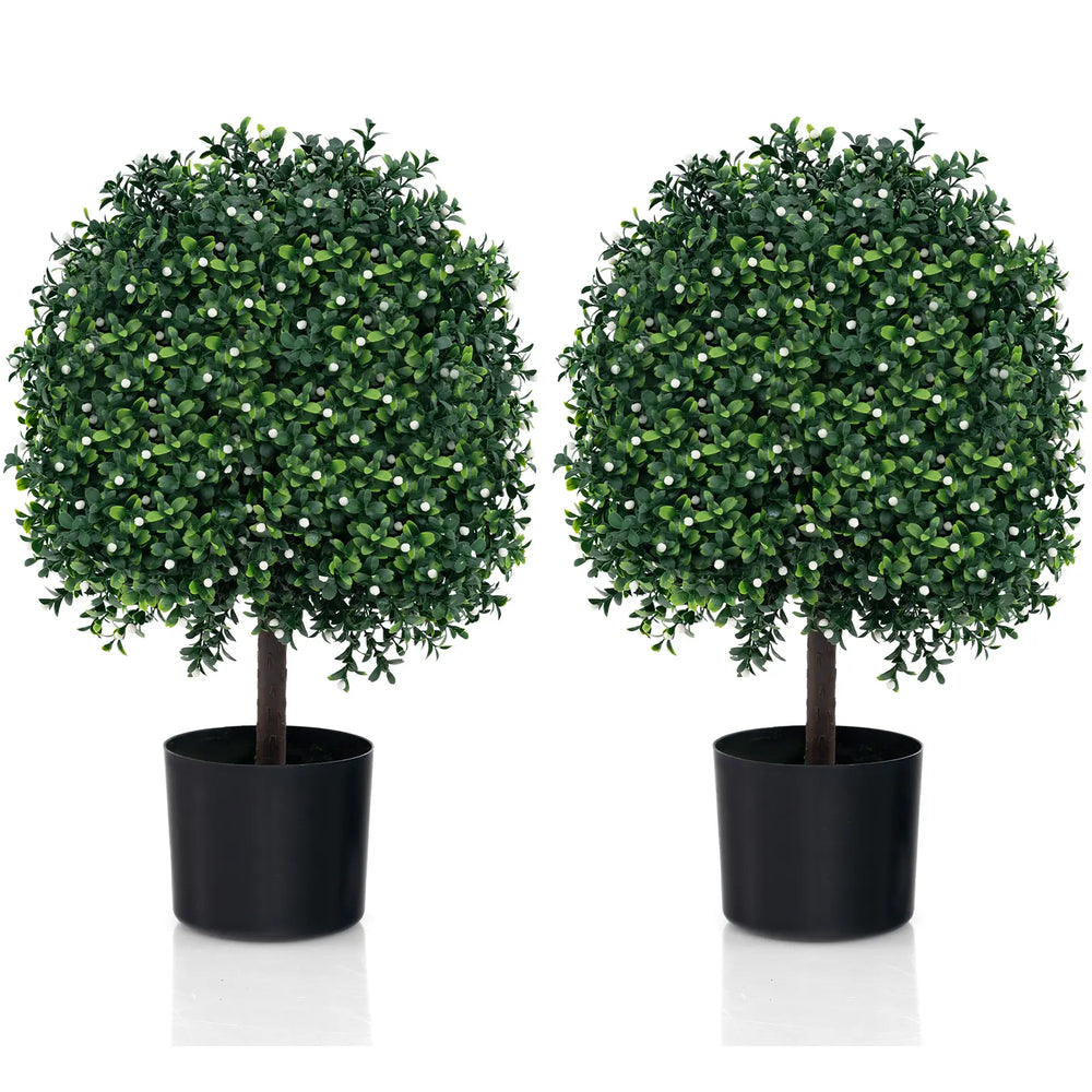 2 Piece Artificial Boxwood Topiary Ball Tree with UV Rated Leaves and 343 White Fruits