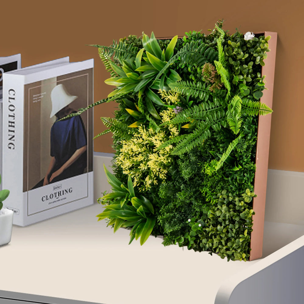 Add a touch of nature to your space with the 2 pack 3D hanging greenery backdrop! The wall mount artificial boxwood plant captures the essence of nature with its variety of colors and intricate details. From vibrant succulents to delicate flowers and lush leaves, each element adds a realistic and lifelike feel to any space. Made from premium PE material, the faux hanging grass wall art is anti-fading and sun-proof properties, ensuring its beauty both indoors and outdoors for longer service life. Designed to flourish in all seasons, the framed fake foliage wall art will remain evergreen without the need for constant care. With 16 metal rings for easy attachment to the frame, setting up the simulated plant wall decor is a breeze. The pre-drilled holes on the back allow for effortless mounting on any wall, whether it be in the living room, office, balcony, or any other desired location. Bullet Point: 3D Lifelike Artificial Hedge: Combined with 11 types of imitation plants including vivid flowers and gradient leaves, the hanging 2 pack greenery hedges create a lively and attractive appearance. The thick and dense arrangement ensures that each piece look naturally lush. High Quality PE Material: The framed artificial foliage wall art is crafted from 100% new PE, known for its fade resistance and sun protection, ensuring longevity and vibrancy in outdoor settings. Additionally, the PE used is no odor, making it ideal for indoor use without health concerns. Wall Mount Design: The hanging artificial plant wall art can be easily attached on the included frame with 16 metal rings. The frame is equipped with 4 pre-drilled holes spaced 37 cm apart, allowing for flexible and secure mounting on any desired wall area. Free from Upkeep: Unlike real plants, the wall mount framed greenery hedge requires no watering, sunlight, or fertilizing to maintain its vividness. When it faces dust, a simple cleaning with a cloth will suffice. If the greenery art wall deformed due to transportation, you can sort out the leaves to restore the shape. Wide Range of Application: The artificial wall hedge plant can cater to various decorative needs. The versatility makes it suitable for enhancing the ambience of your living rooms, balconies, bedrooms, stores, and offices. Features: Combination of 11 kinds of faux plants creates a vibrant and lifelike look 100% new PE leaves are non-fading and easy-to-maintain Sun-protective material makes the hanging artificial greenery suitable for indoors and outdoors Easy to anchor through the 4 pre-drilled holes Attach the grass wall panels on the frame with 16 provided rings Quick to connect each panel with interlocking connectors Suitable for multiple scenes, including balcony, party, home or office