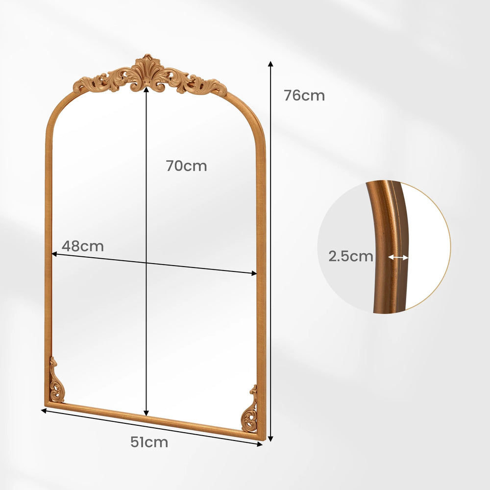 Arched Mirror for Wall Gold Traditional Vintage Ornate Baroque Mirror with Metal Frame-S