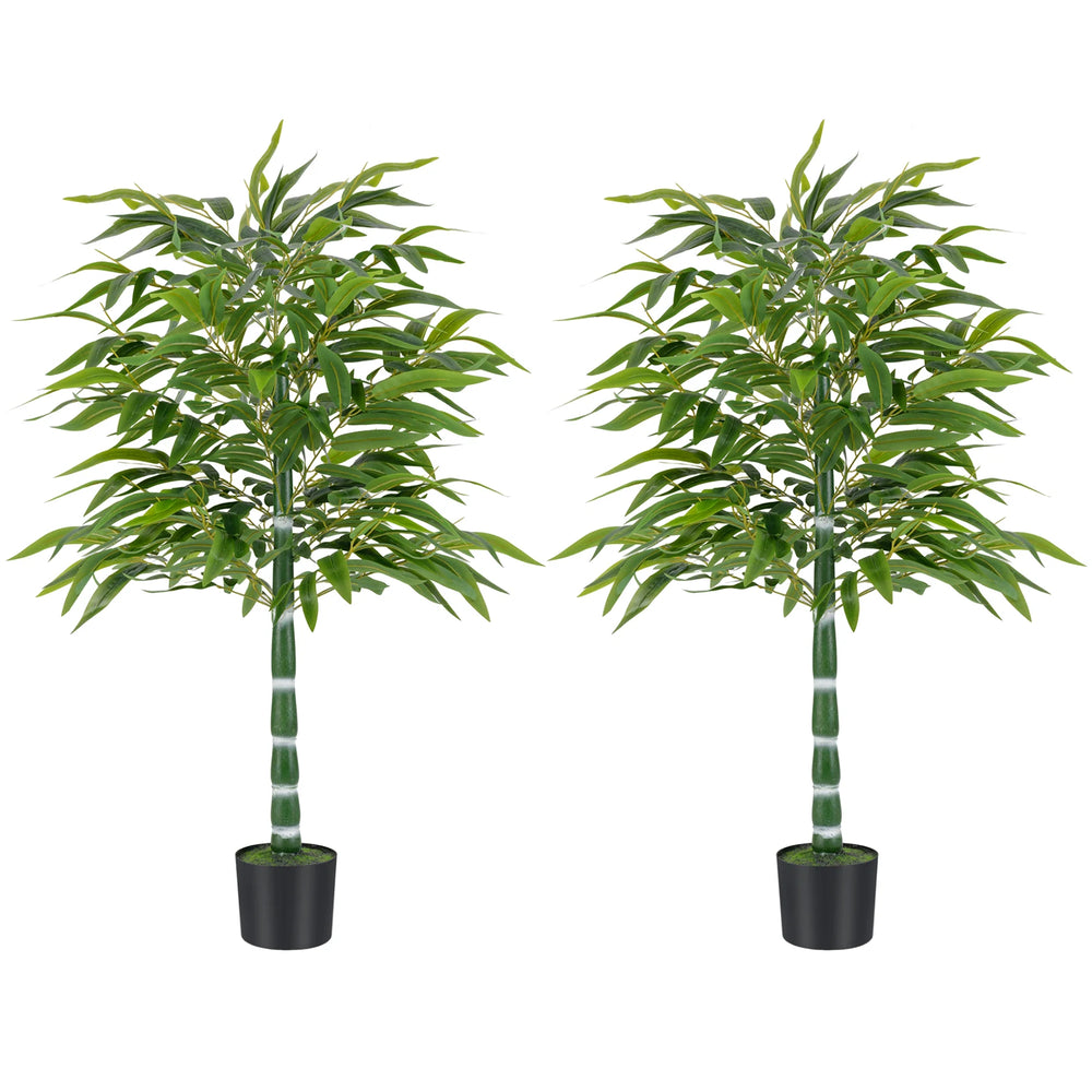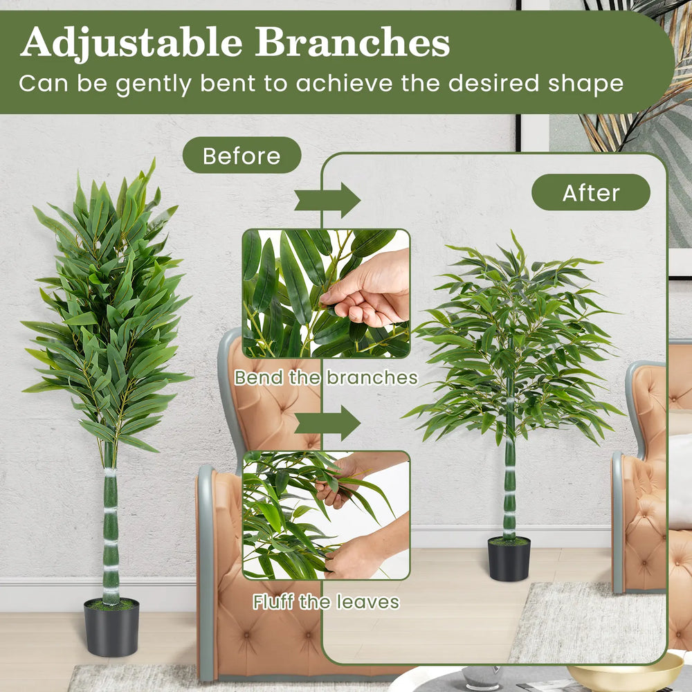 125 CM Artificial Bamboo Tree Set of 2 with Plastic Nursery Pot and Adjustable Branches