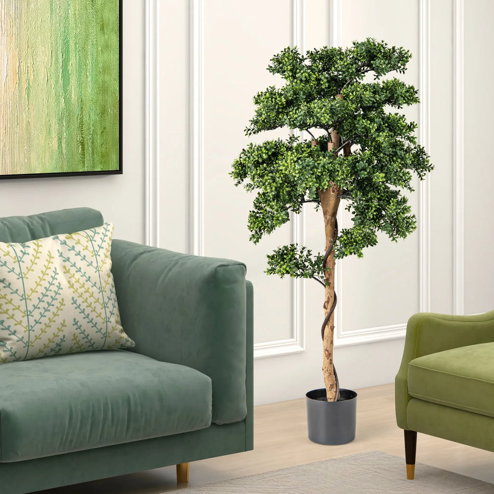 Artificial Boxwood Topiary Tree Potted Plants with PE Leaves-Green