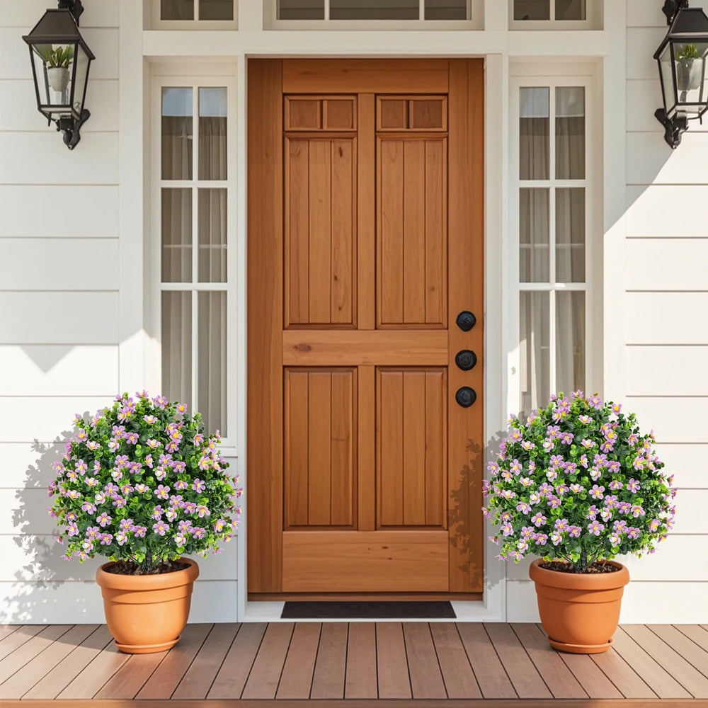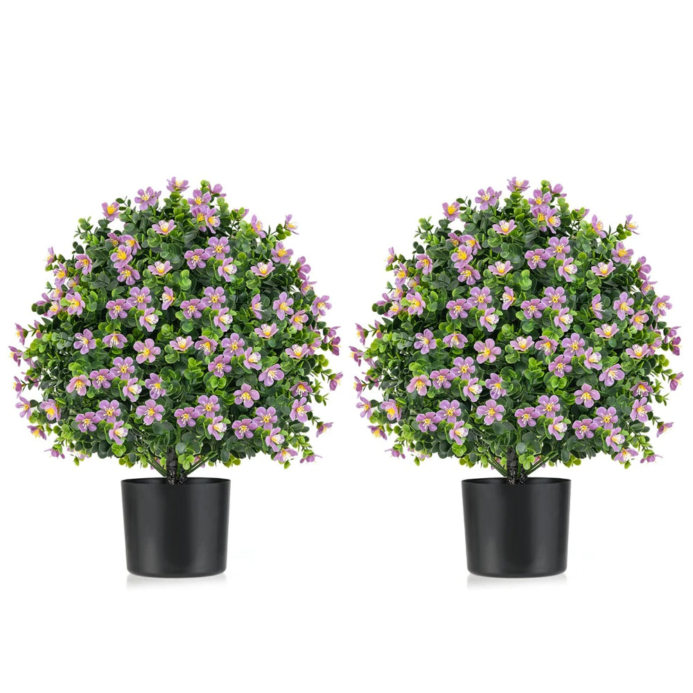 2 Pack Artificial Boxwood Topiary Ball Tree with Flowers and Plastic Nursery Pot-Purple