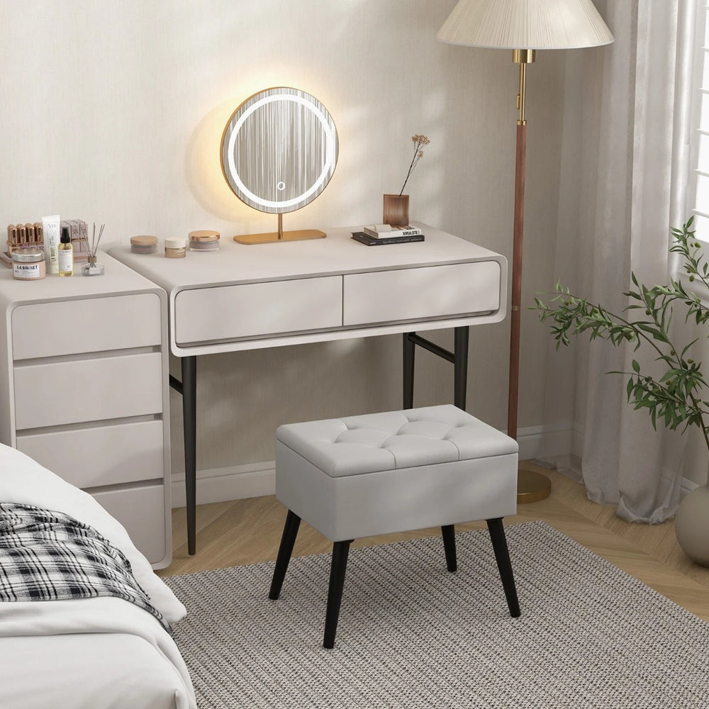 Modern Upholstered Flip Top Velvet Storage Ottoman Footrest-Grey
