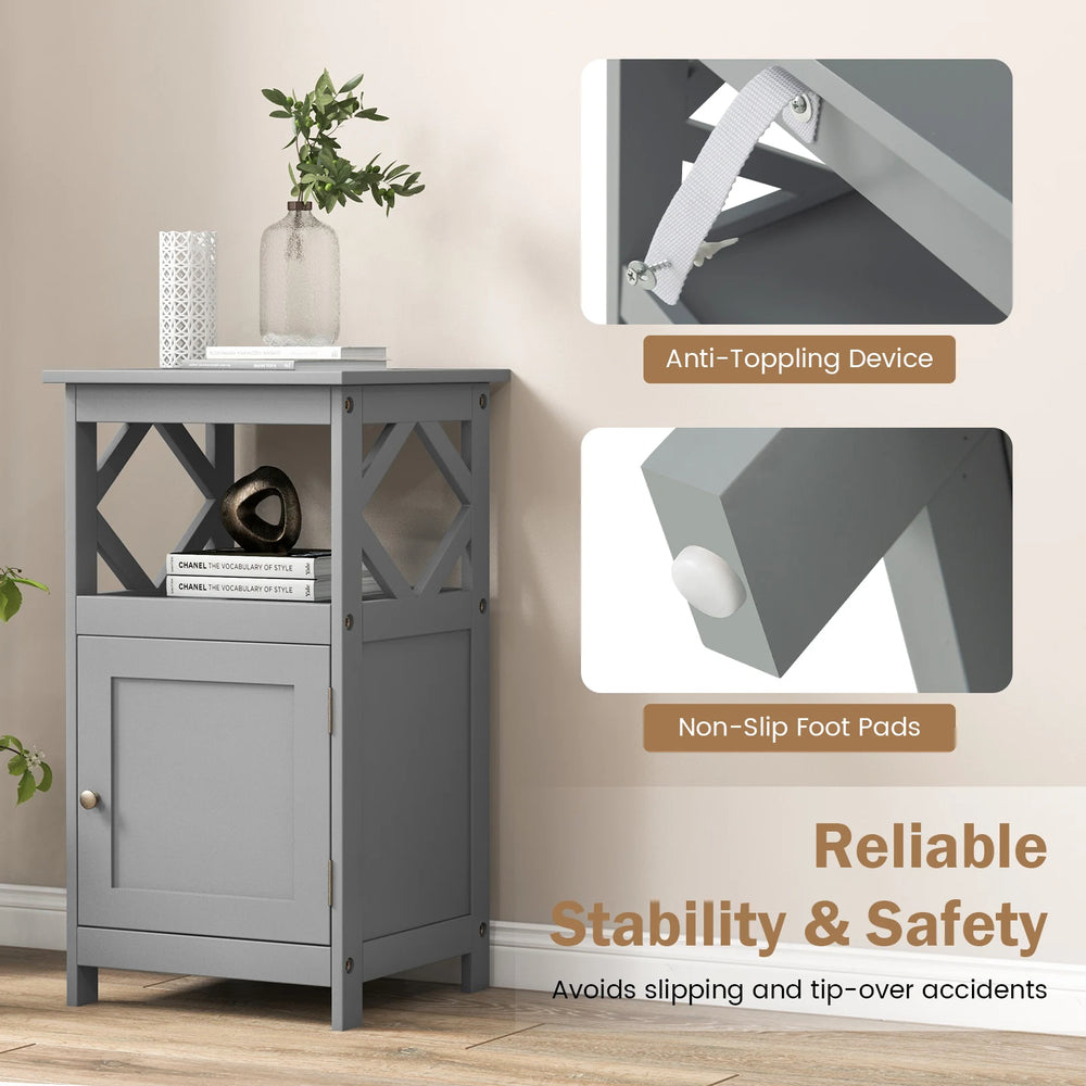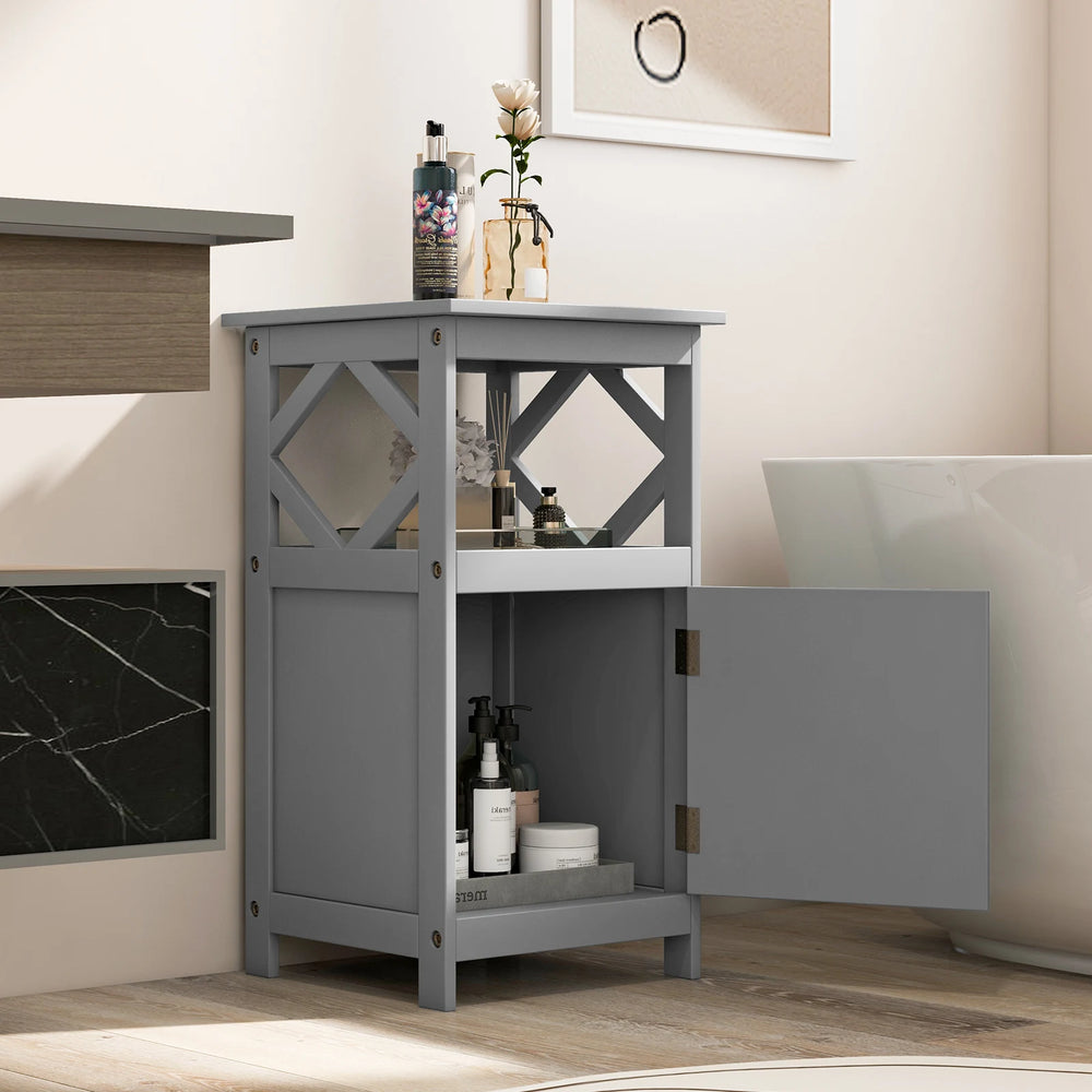 Bathroom Floor Cabinet Side Storage Organizer with Open Shelf and Single Door-Gray