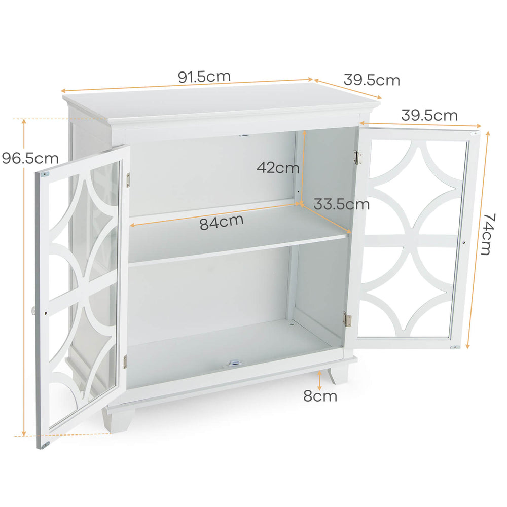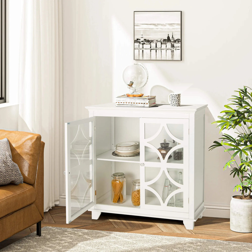 Buffet Sideboard Storage Cabinet with Glass Door for Kitchen Hallway -White