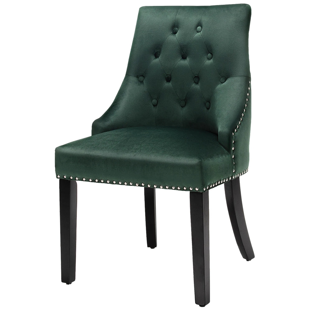 Modern Upholstered Button-Tufted Dining Chair with Naild Trim-Dark Green