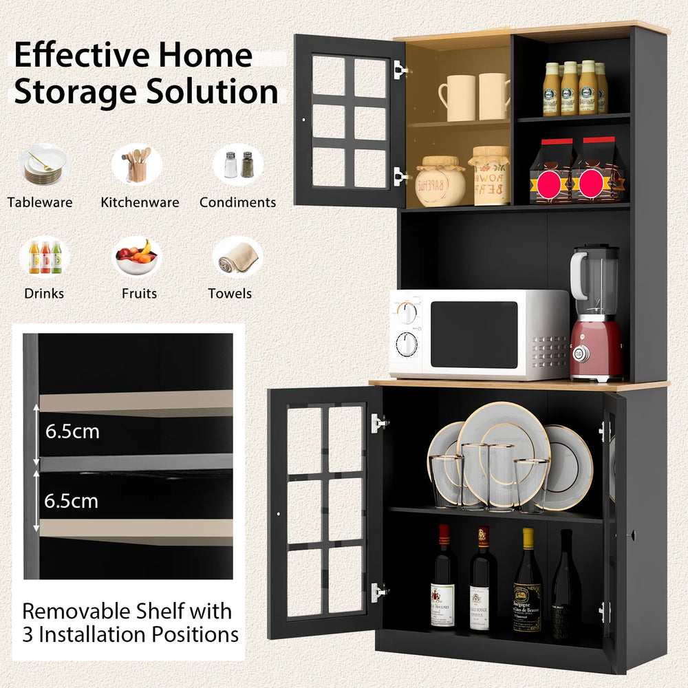 72 Inch Freestanding Pantry Cabinet with Hutch and Adjustable Shelf-Black