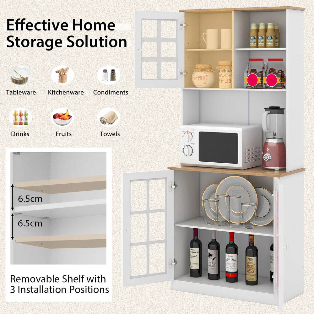 72 Inch Freestanding Pantry Cabinet with Hutch and Adjustable Shelf-White